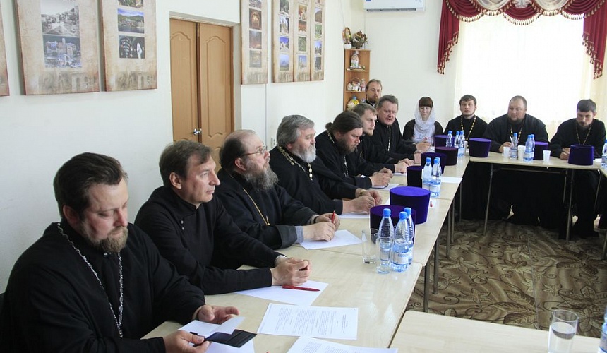 Участниками совещания стали помощник Управляющего епархии иерей Симеон Есин, благочинные округов епархии, руководители профильных отделов, пресс-секретарь епархии И.Г. Шарков, руководитель епархиального отдела культуры А.А. Фокша.