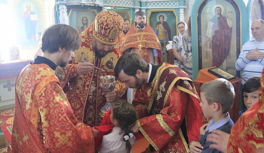 Перед причастием с проповедью к молящимся обратился иерей Сергий, рассказав о святом покровителе храма – великомученике Георгии Победоносце.