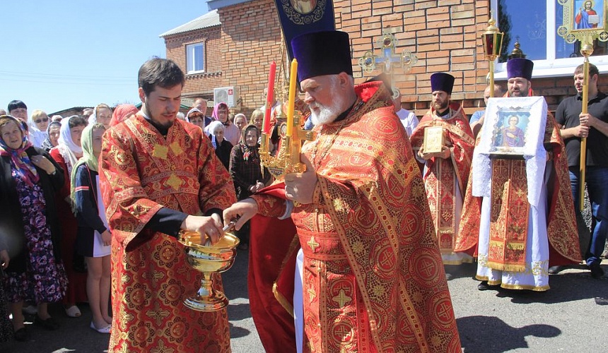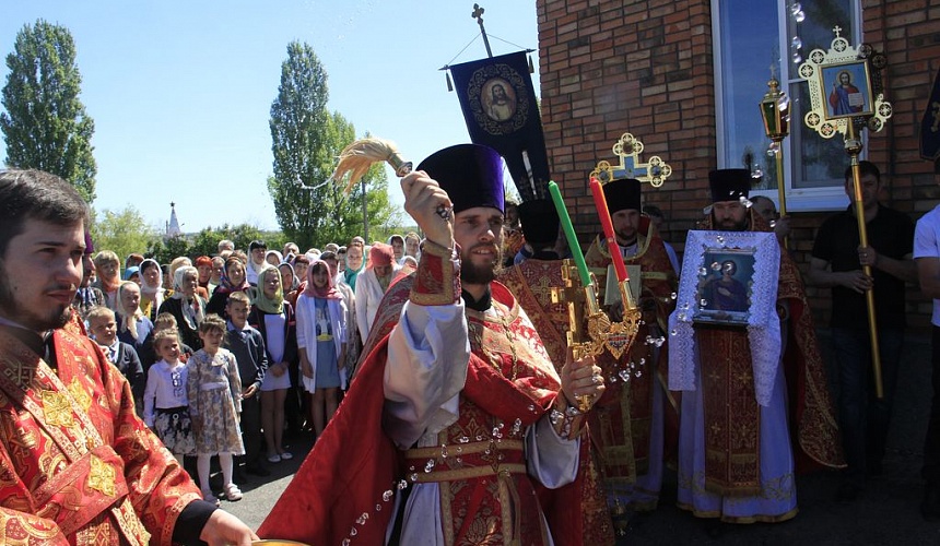По завершении праздничной Литургии был совершен крестный ход вокруг храма.