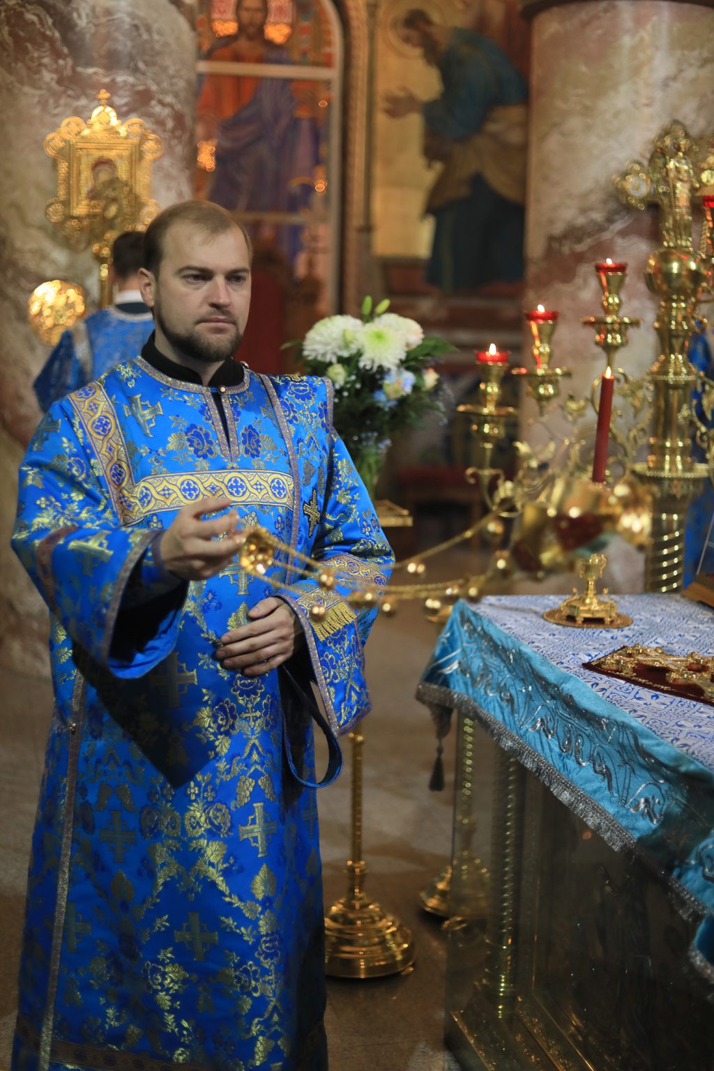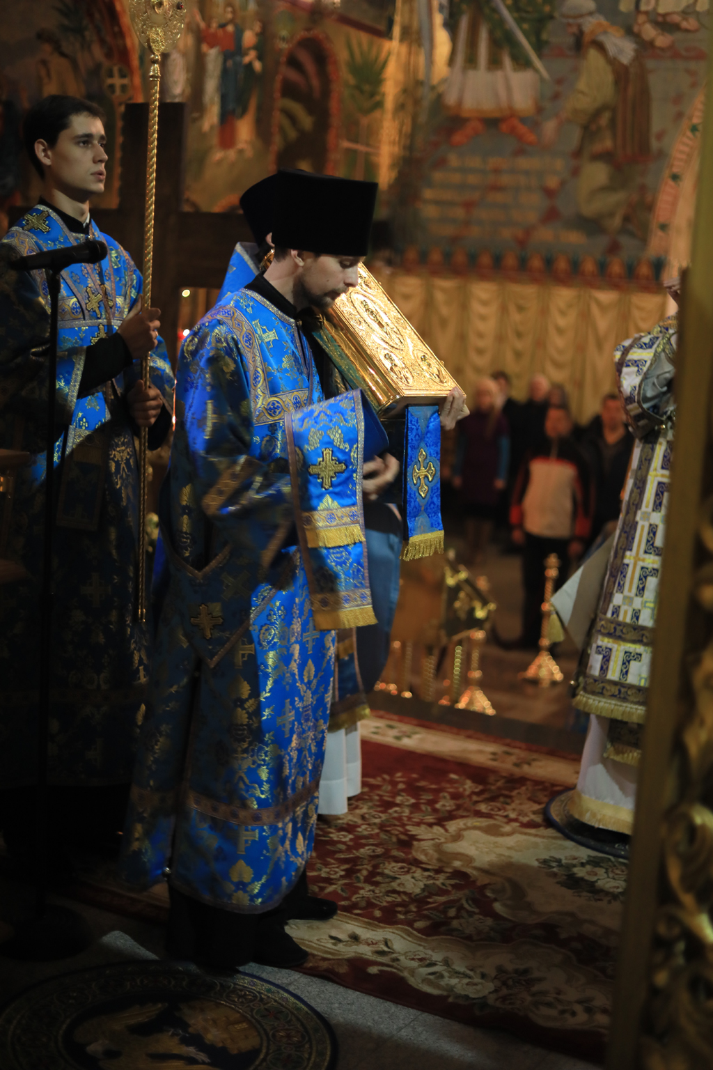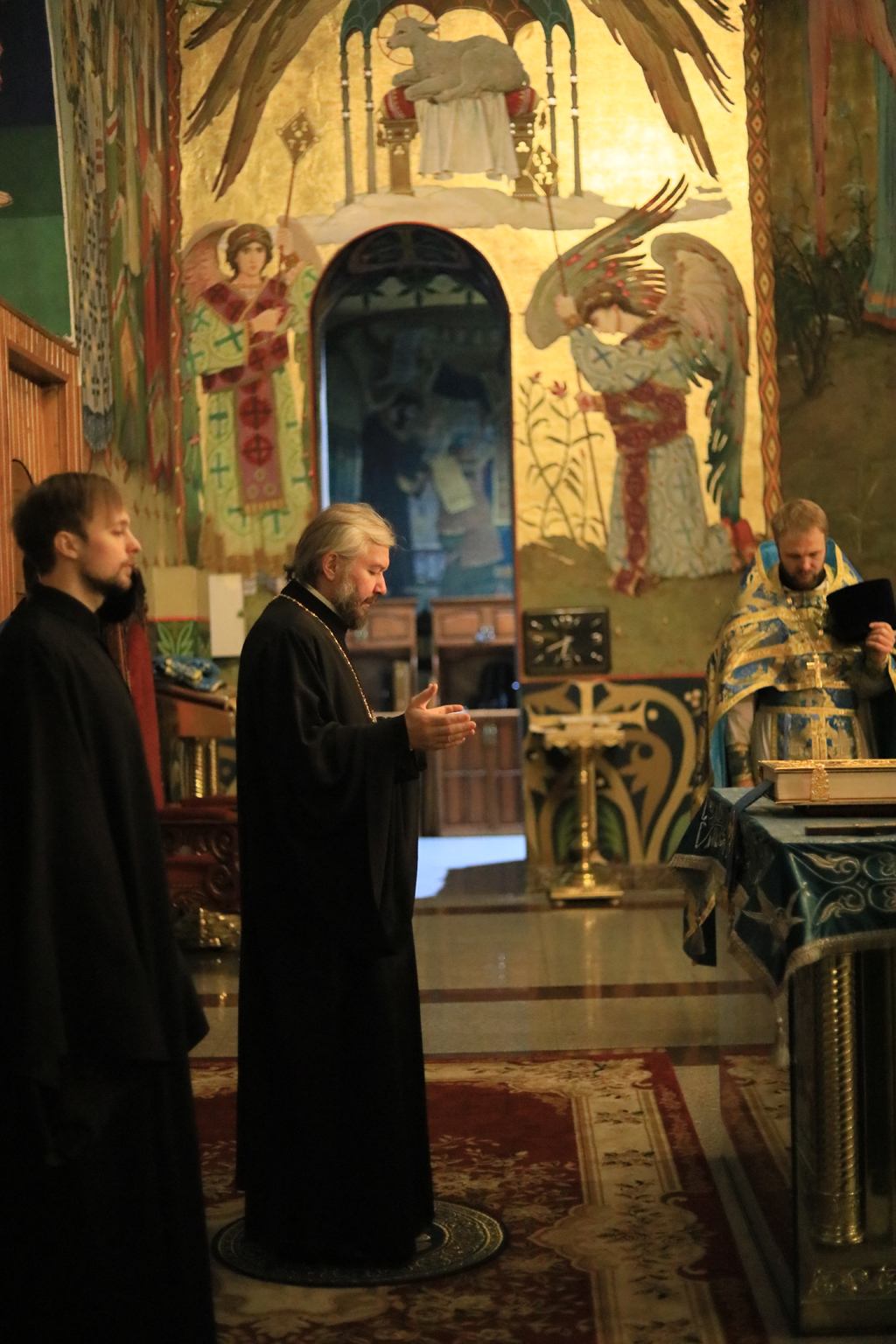 Его Преосвященству сослужили настоятель Покровского кафедрального собора иерей Александр Теличкин, духовенство собора иерей Леонид Зацепилин, иеродиакон Флавиан (Васильев), диакон Вадим Ефимов.