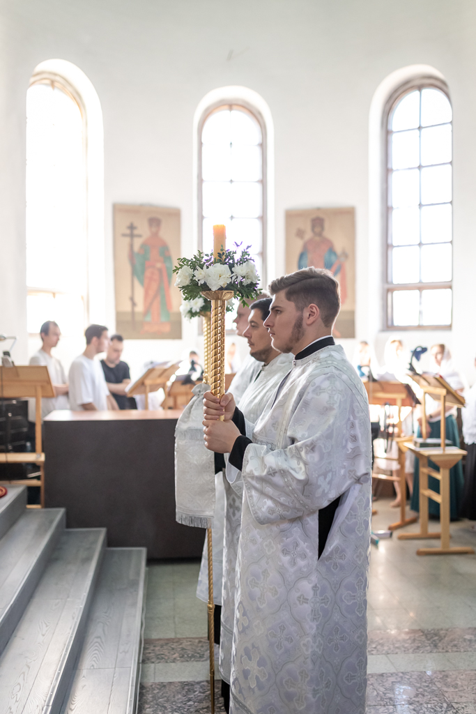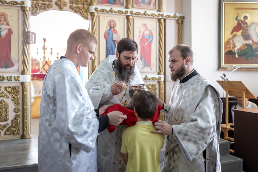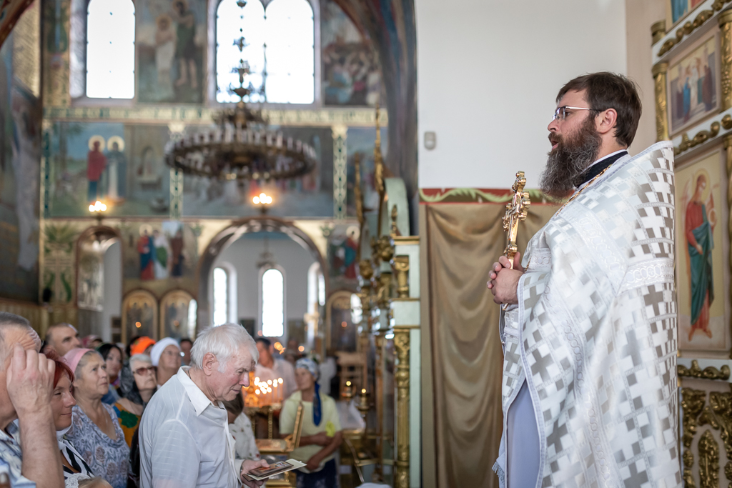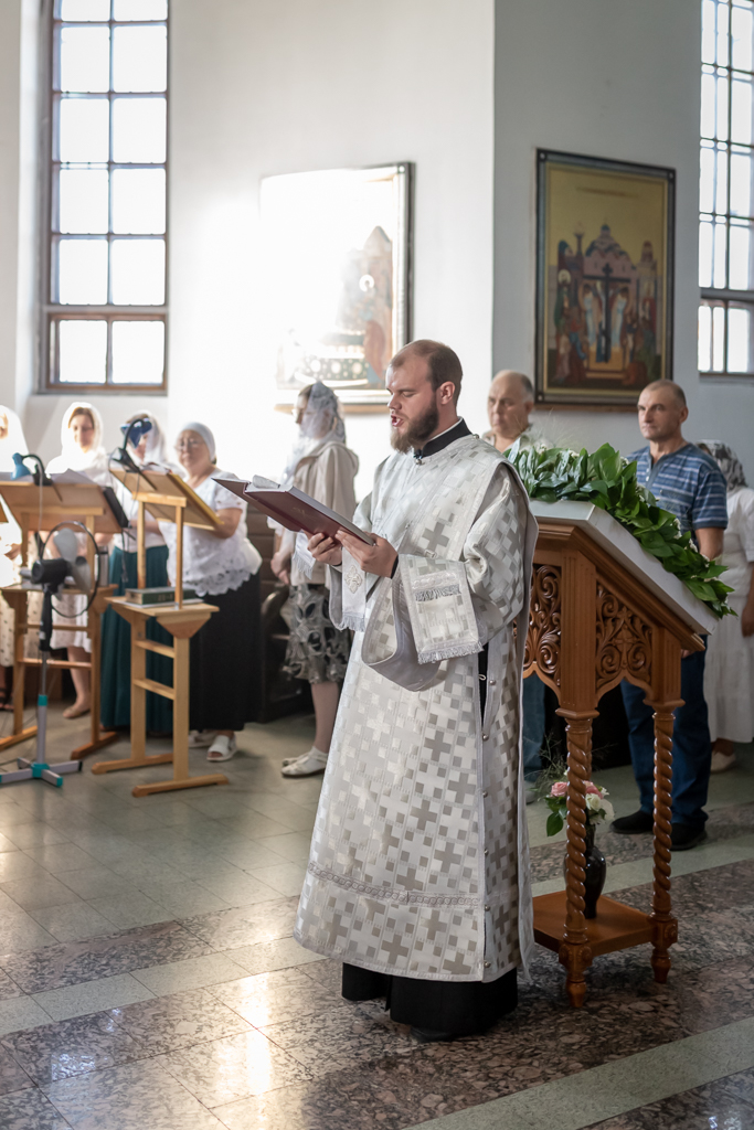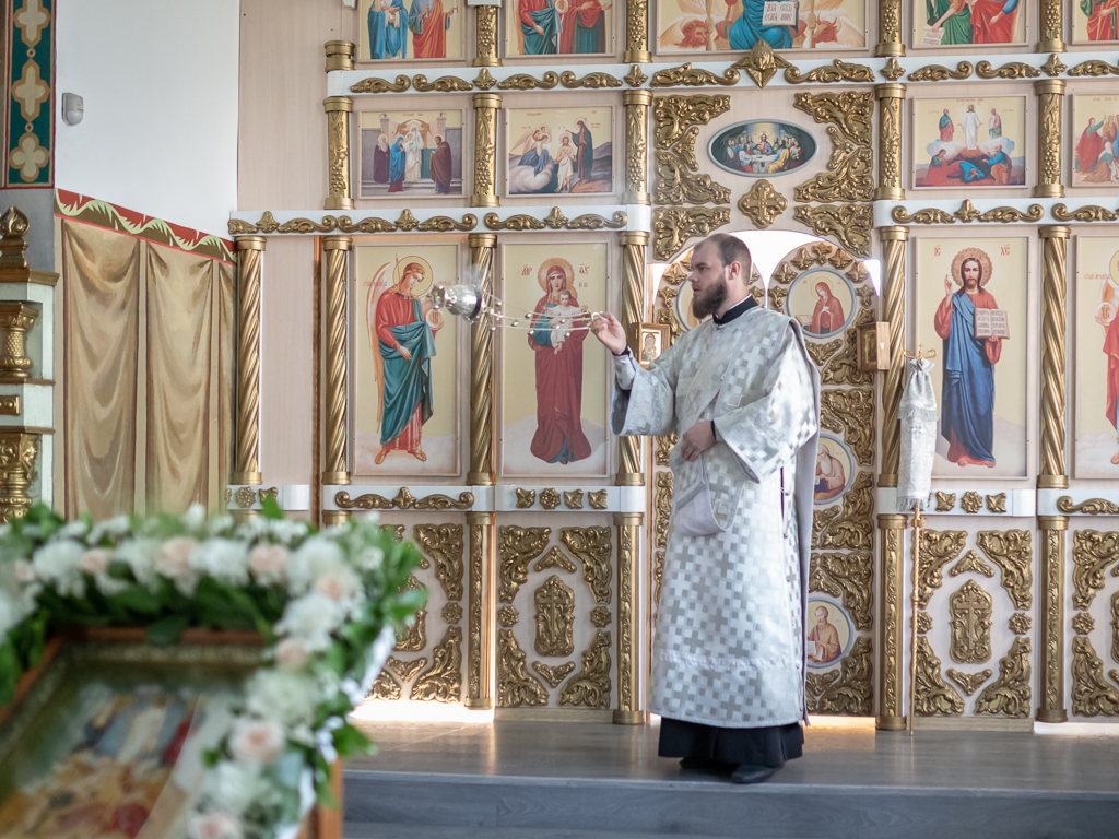 Его Преосвященству сослужили настоятель собора иерей Александр Теличкин, иерей Михаил Дубянский, диакон Трофим Осяк, диакон Никита Осипов.