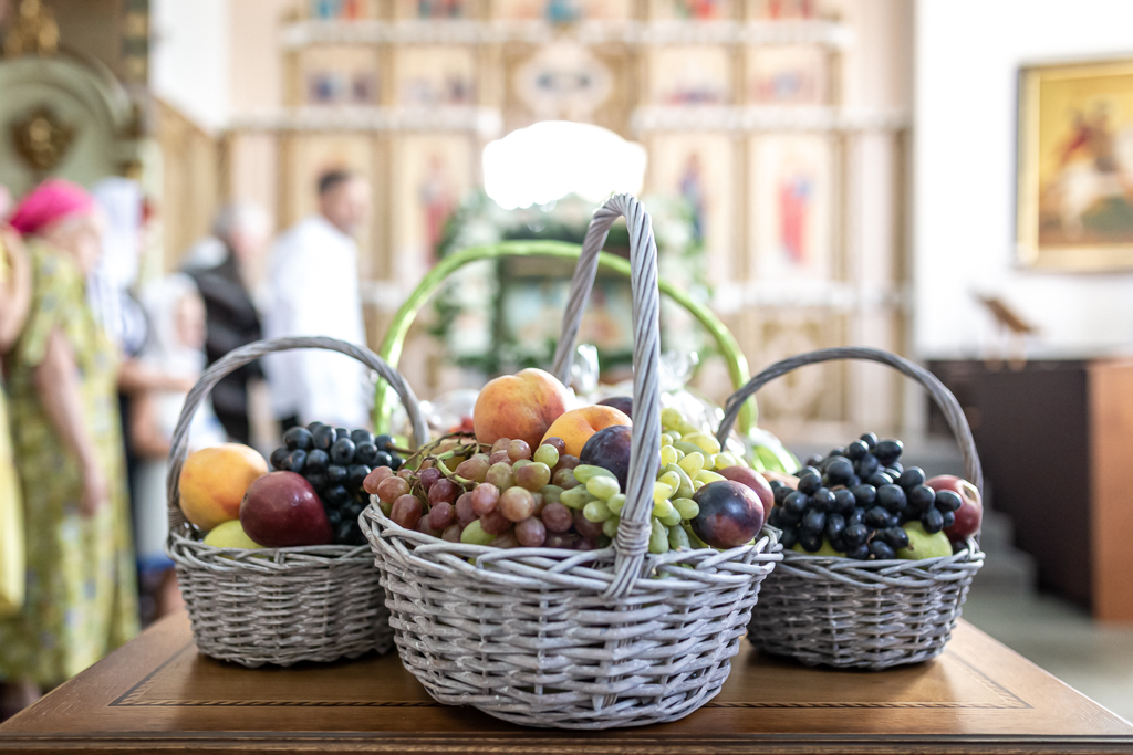 По завершении Литургии по церковной традиции было совершено освящение плодов нового урожая.