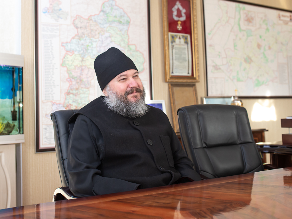 На встрече Епископ Симон и Евгений Петрович обсудили духовно-нравственное воспитание в образовательных учреждениях Октябрьского района, где с 2007 года в школах в образовательную программу включен курс «Основ православной культуры».