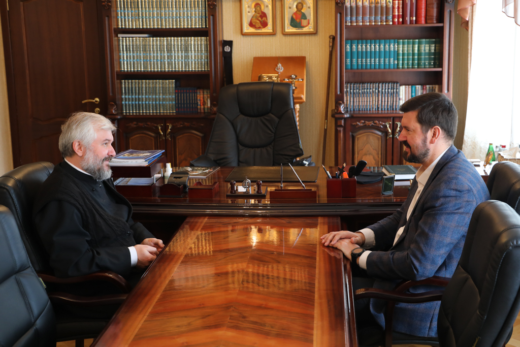 Преосвященнейший епископ Симон и министр экономического развития Ростовской области М.В. Папушенко провели рабочую встречу в Епархиальном управлении города Шахты