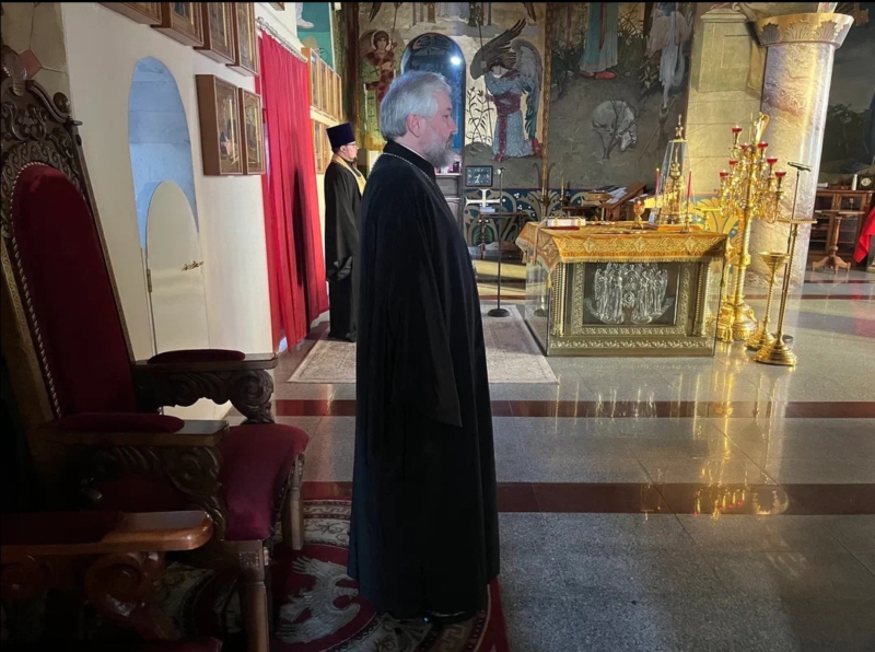 Вместе с архиереем молился настоятель собора иерей Александр Теличкин и прихожане.