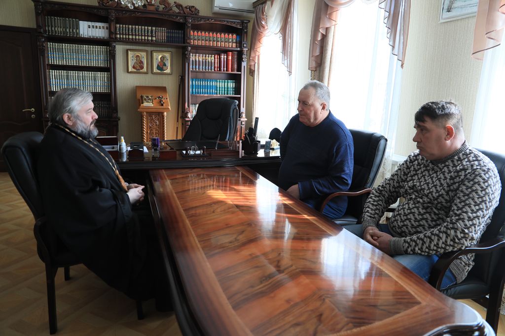 16 марта в Епархиальном управлении города Шахты состоялась встреча епископа Шахтинского и Миллеровского Симона с главой сельского поселения Алексеевка Александром Геннадьевичем Жориным и атаманом станицы Мало-Несветаевской Андреем Викторовичем Кирсановым.