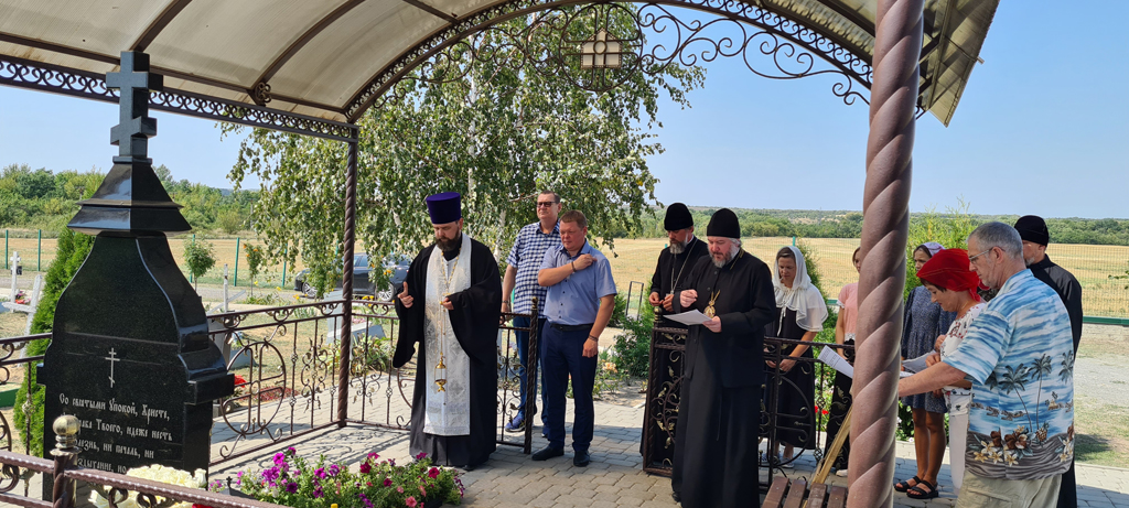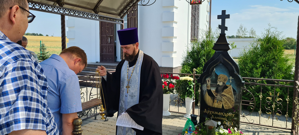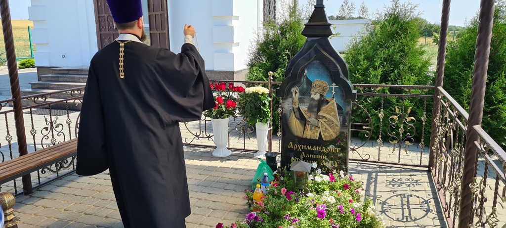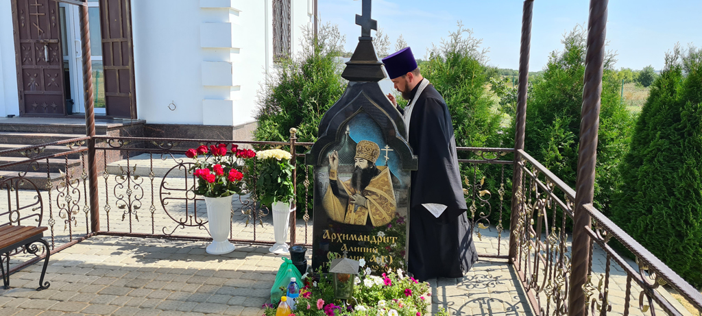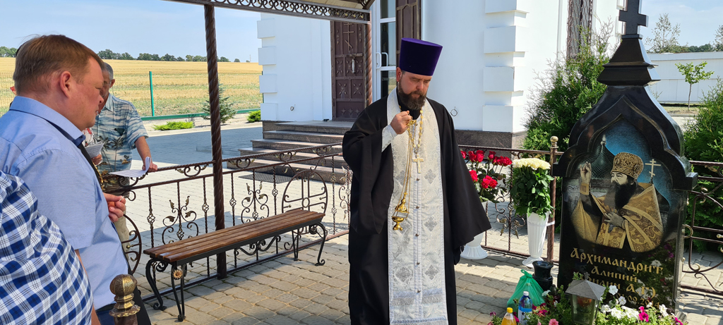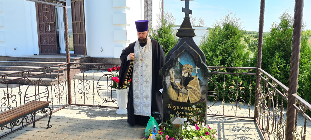 Преосвященнейший епископ Симон, протоиерей Роман и духовные чада архимандрита Алипия совершили панихиду на месте его погребения.