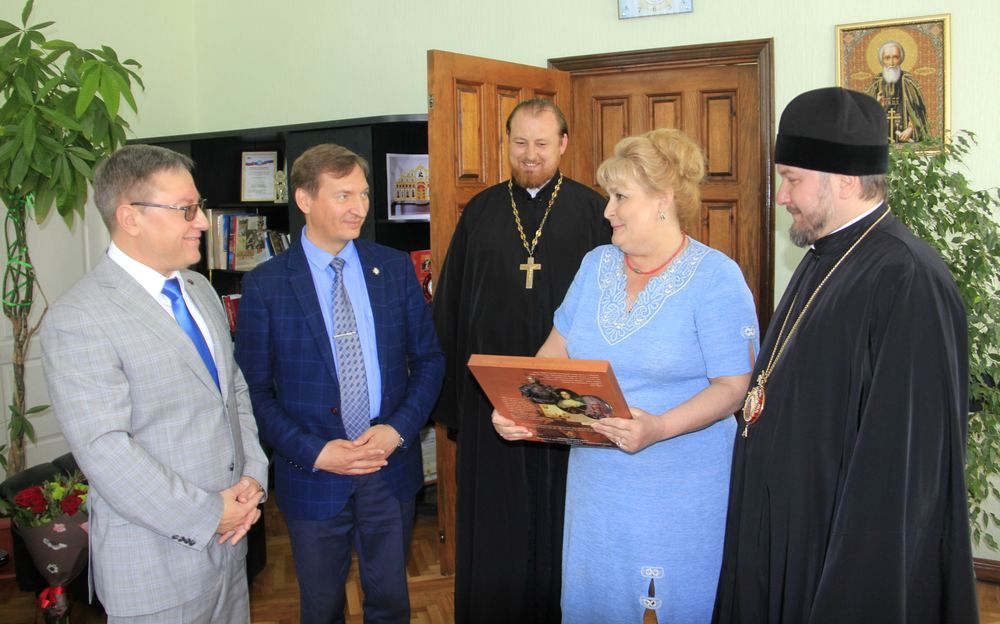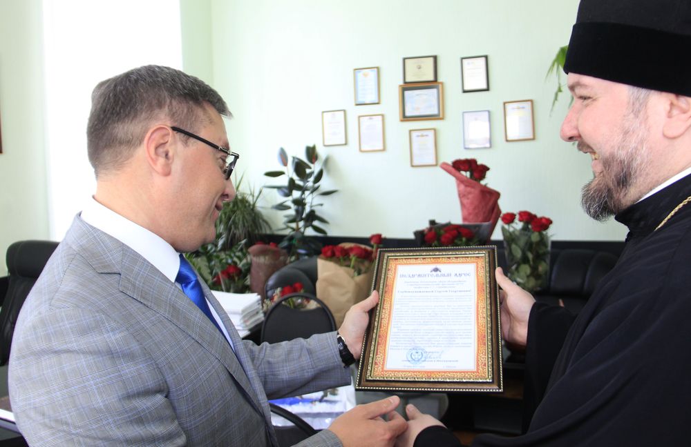Преосвященнейший епископ Симон поздравил с юбилеем директора Института сферы обслуживания и предпринимательства (филиала) ДГТУ г. Шахты профессора С.Г. Страданченко
