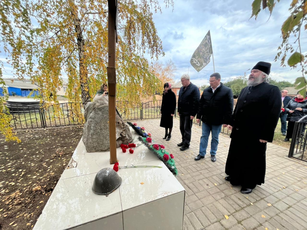 Перед началом акции епископ Шахтинский и Миллеровский Симон и участники мероприятия возложили цветы к монументу, посвященному погибшим воинам локальных конфликтов.