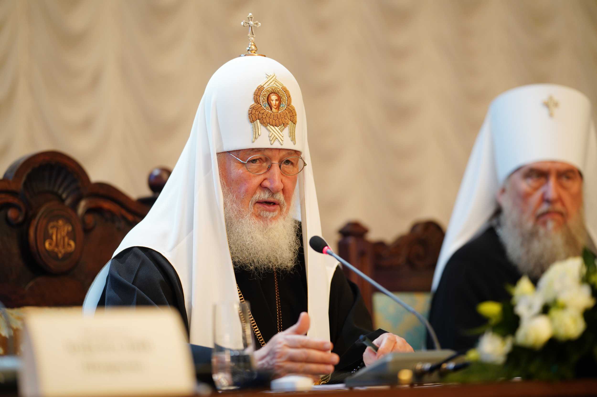 Затем Предстоятель Русской Православной Церкви обратился с заключительным словом к участникам Архиерейского Совещания: