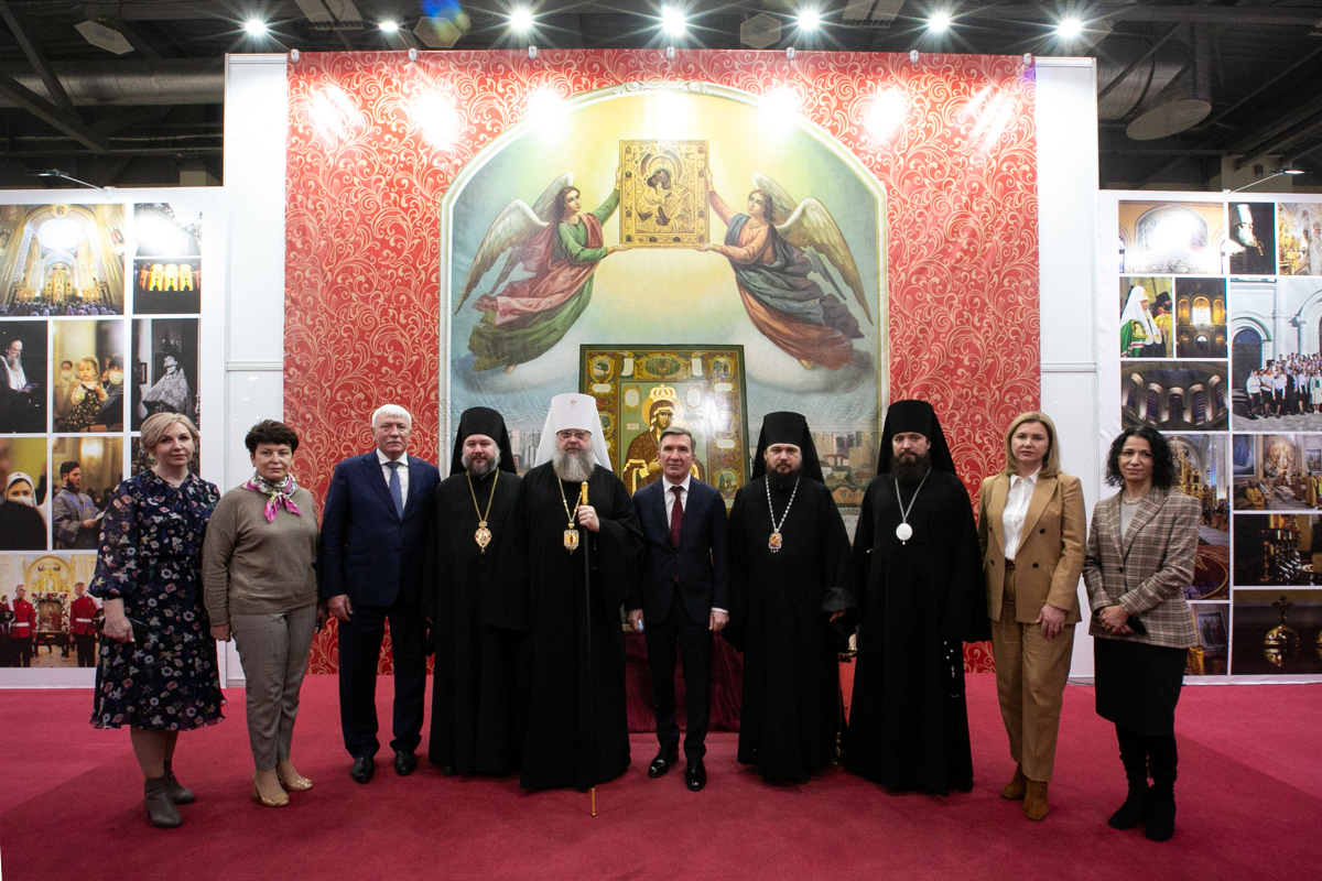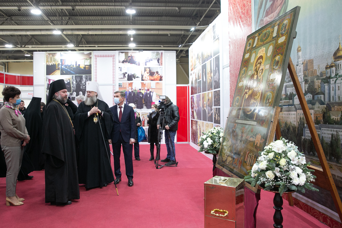 На выставке представлена церковная атрибутика, а также иконы, православная литература, продукция монастырских подворий, ювелирные украшения и натуральные продукты питания. Центральная святыня выставки Азовская икона Божией Матери.
