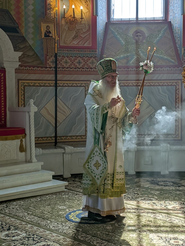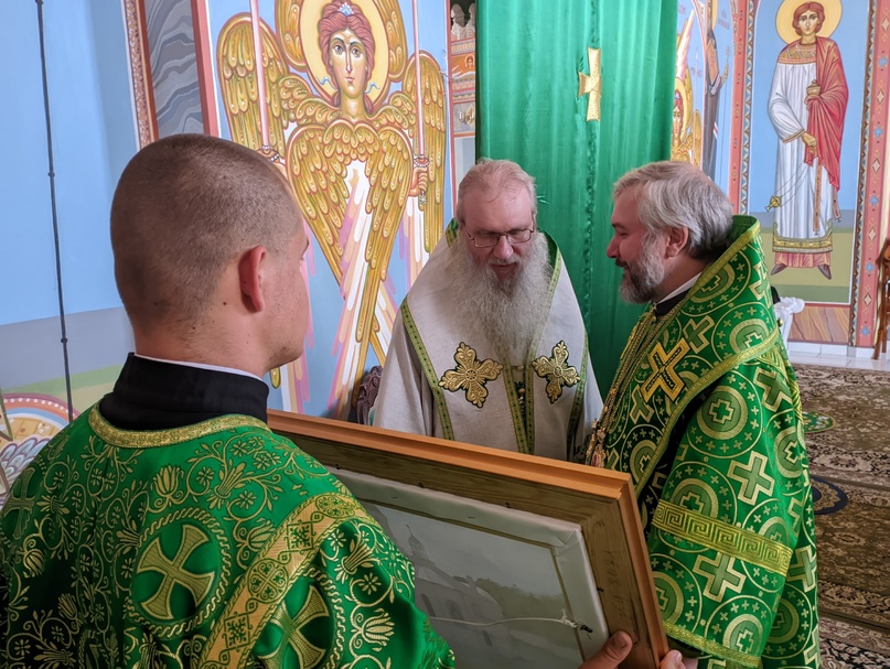 После молитвы владыка Елисей поблагодарил владыку Симона за совместное богослужение и на молитвенную память преподнес архипастырю образ преподобной Арсении и обратился к духовенству и паломникам с архипастырским словом.