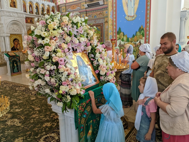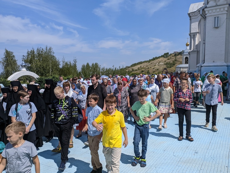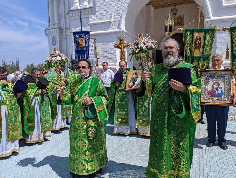 По заамвонной молитве священнослужители и паломники совершили крестный ход вокруг соборного храма обители и славление перед образом преподобной Арсении, игуменьи Усть-Медведицкой.