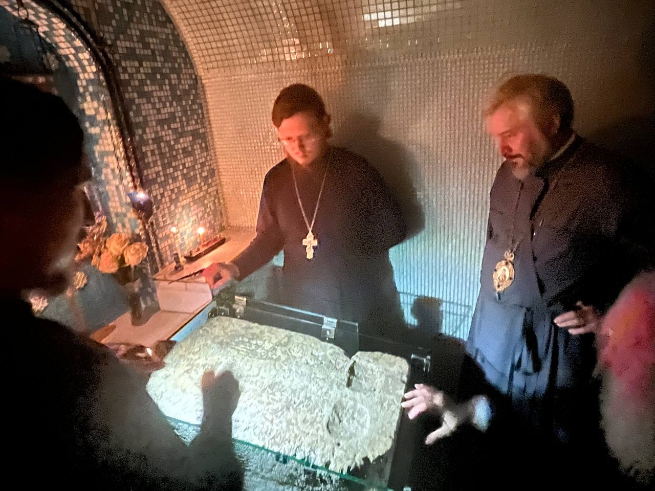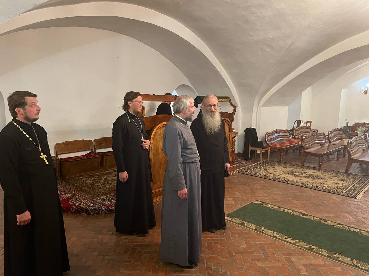 В этот день епископ Елисей и епископ Симон посетили монастырские пещеры, выкопанные игуменией Арсенией. Владыка Елисей рассказал о чтимых святынях обители, историю монастыря и познакомил с жизнью преподобной Арсениии.