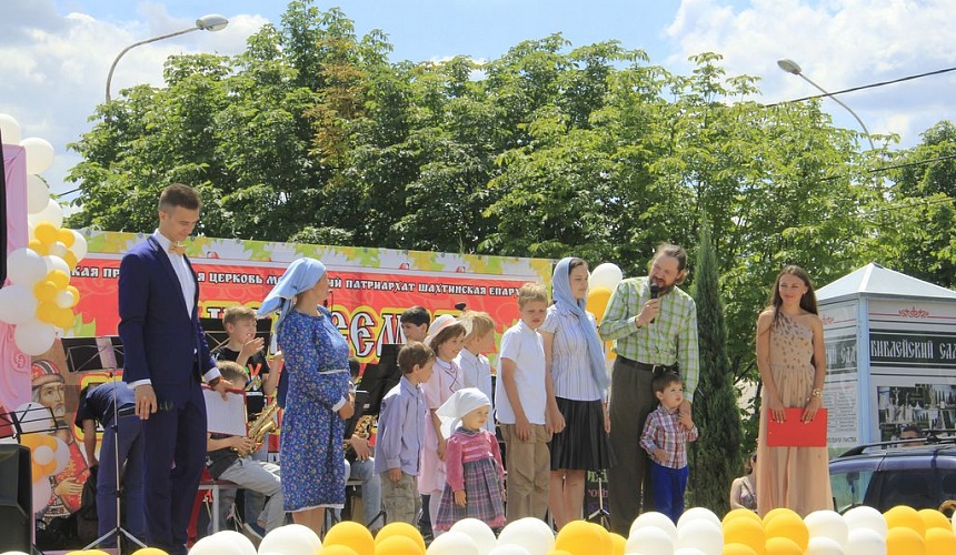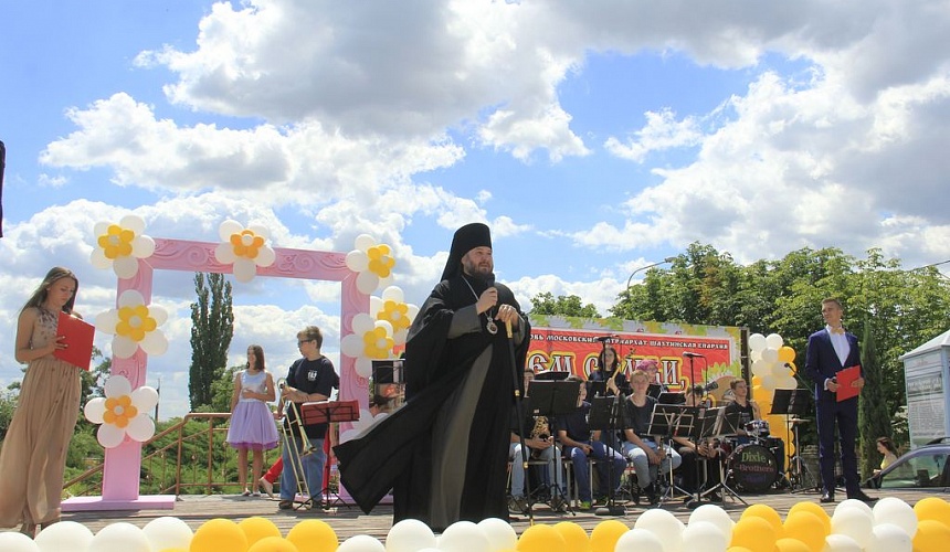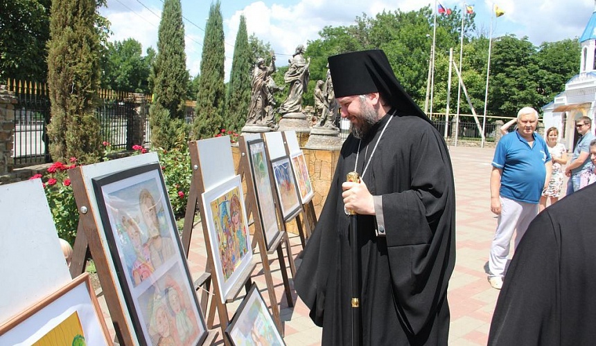Далее, владыка Симон в сопровождении настоятеля кафедрального собора г. Шахты, председателя епархиального отдела по взаимоотношениям Церкви и общества иерея Симеона Есина осмотрел площадки фестиваля, выставки и пообщался с семьями-конкурсантами.