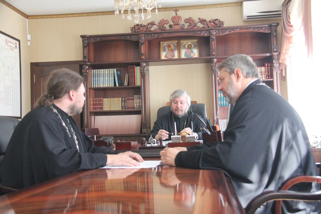 19 сентября 2017 года, Правящий архиерей Шахтинской епархии Преосвященнейший епископ Симон в ходе рабочего совещания, которое состоялось в Епархиальном управлении, принял отчеты о текущей деятельности по реализации епархиальных проектов по социальному служению и работе с молодежью от руководителей соответствующих отделов.
