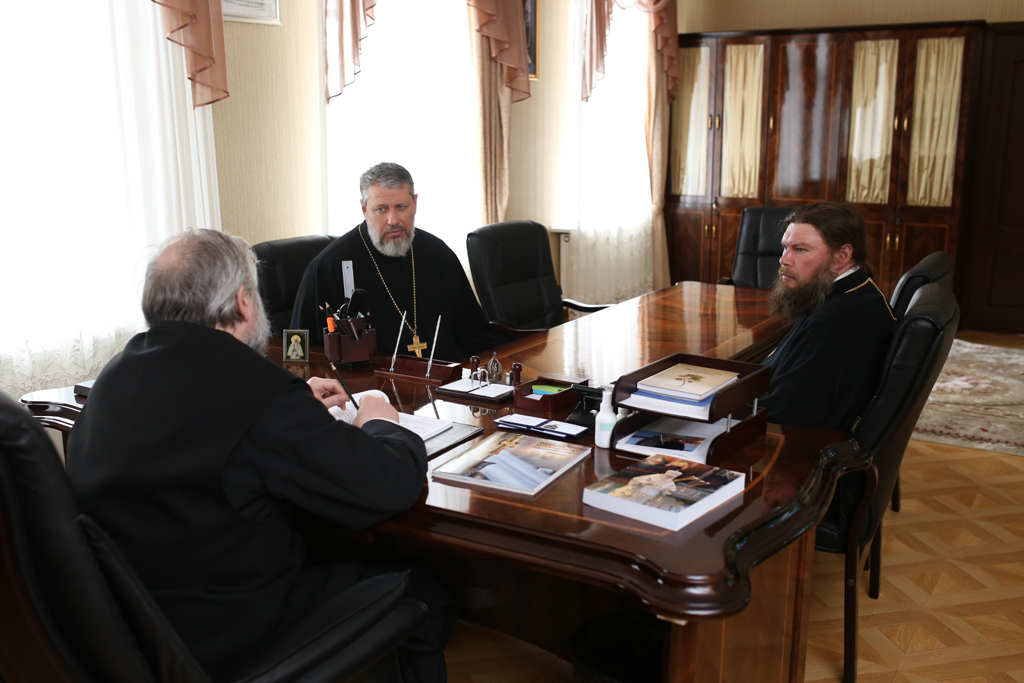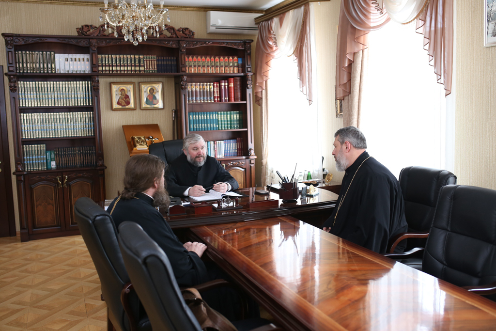 Епископ Шахтинский и Миллеровский Симон провел совещание с председателем епархиального отдела по церковной благотворительности и социальному служению иереем Владиславом Касьяновым и председателем епархиального отдела по работе с молодежью протоиереем Александром Маликовым.