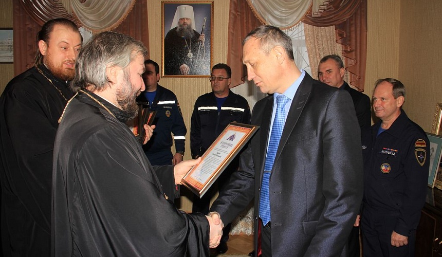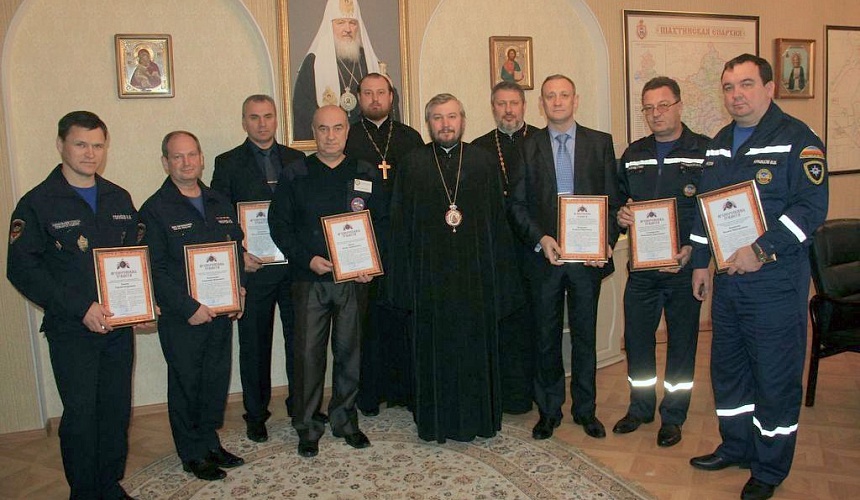 Несколько лет соработничества уже принесли достойные результаты и были полезны как для епархии, так и для Департамента. Спасатели Ростовской области принимают участие и в организации, и в проведении масштабных епархиальных мероприятий. За содействие и поддержку Преосвященнейший епископ Симон наградил архиерейскими грамотами сотрудников: