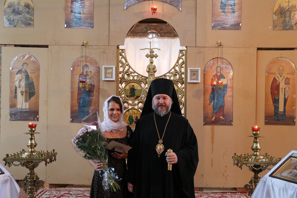 Во внимание к жертвенному материнскому служению и в благословение за чадородие Преосвященнейший епископ Симон вручил Патриарший знак материнства II степени Наталье Владимировне Жевердан.