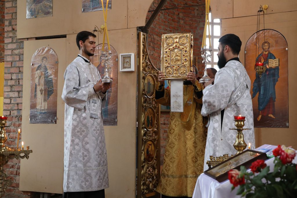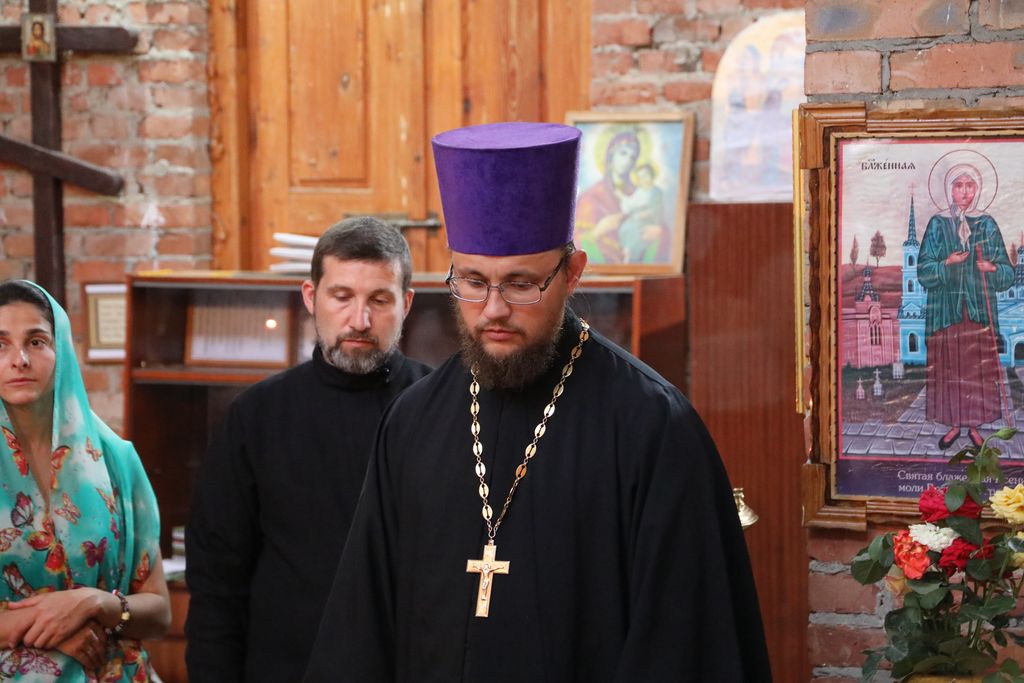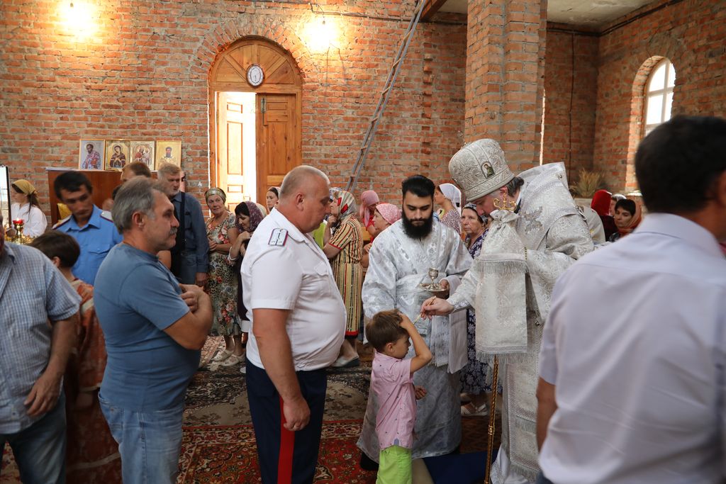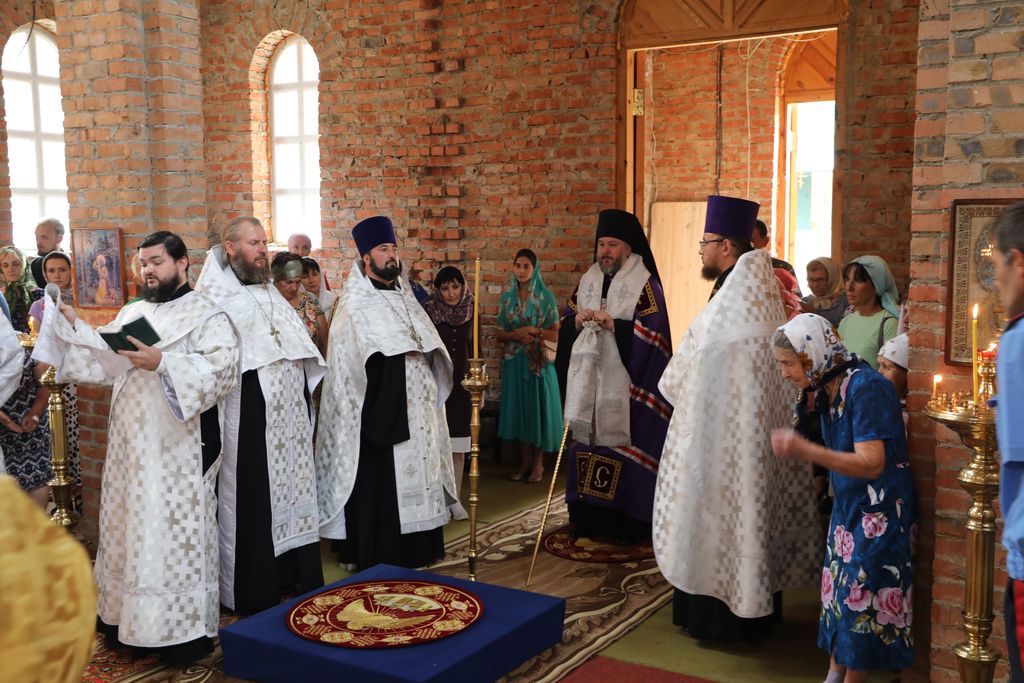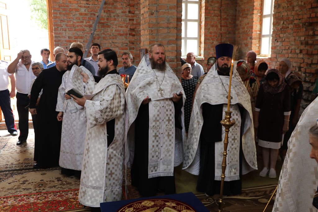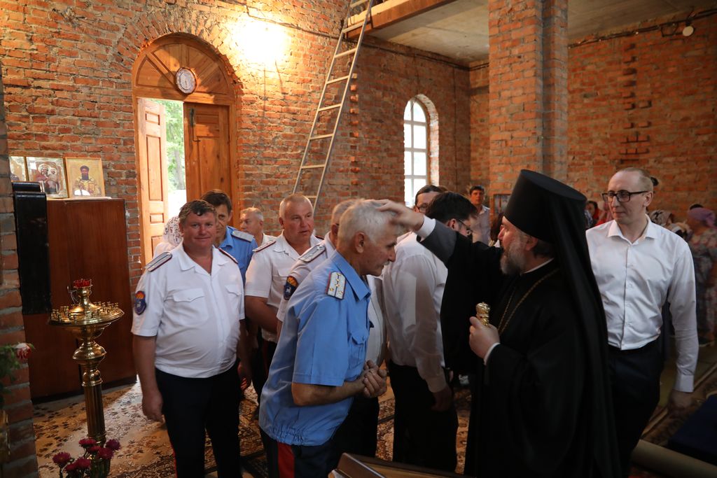 Его Преосвященству сослужили благочинный приходов Кашарского округа протоиерей Игорь Жевердан, клирик Нежинской епархии священник Александр Тимошенко, настоятель храма Архангела Михаила х. Пономарев иерей Алексей Дмитриенко, диакон Трофим Осяк, диакон Игорь Рыбалов.