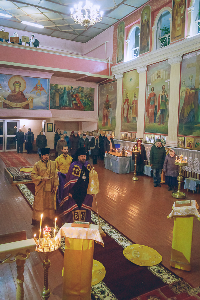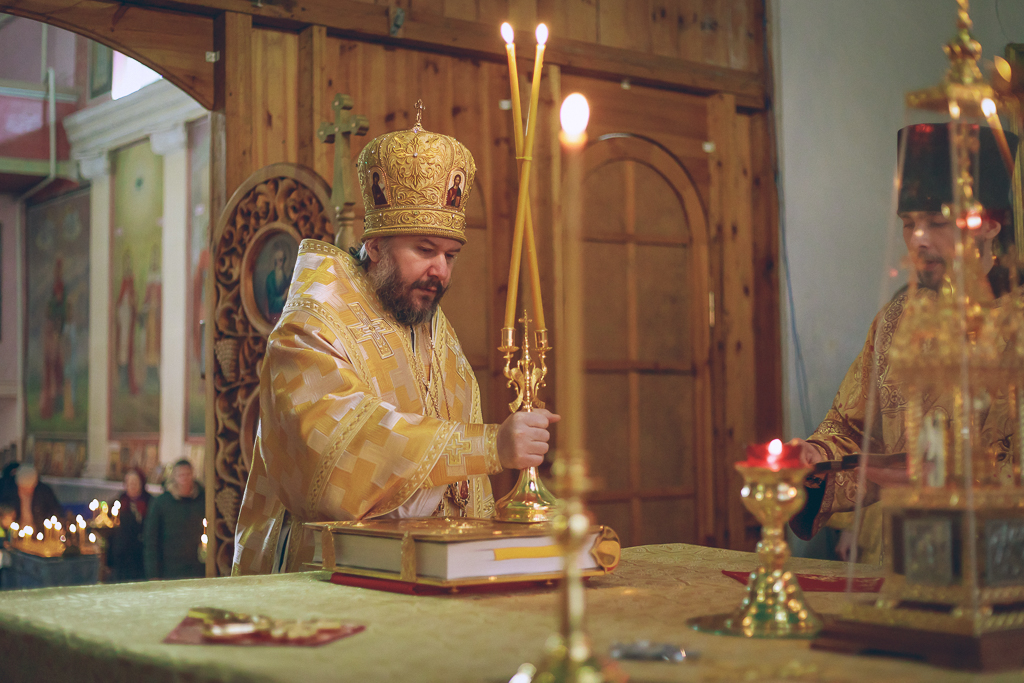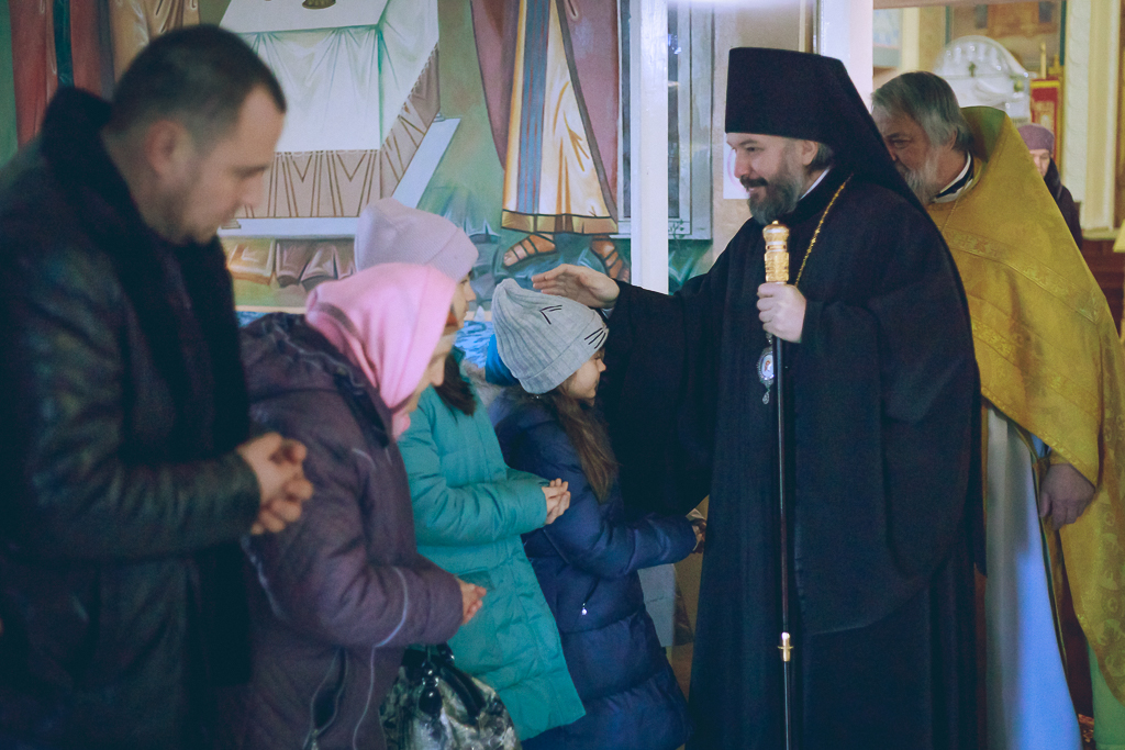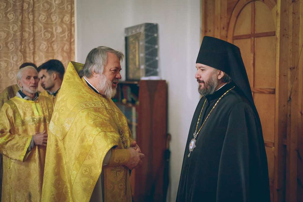 Его Преосвященству сослужили настоятель прихода протоиерей Митрофан Мухин и иеродиакон Флавиан (Васильев).