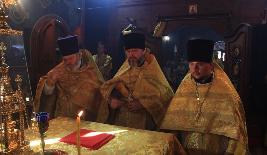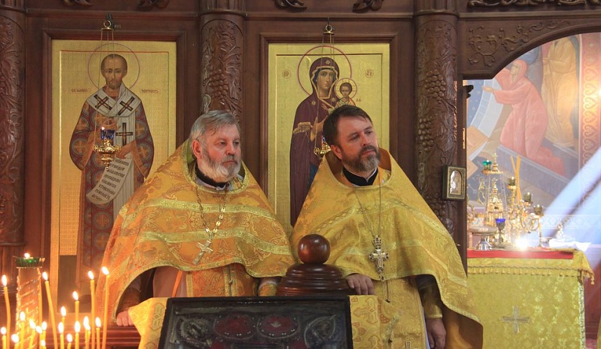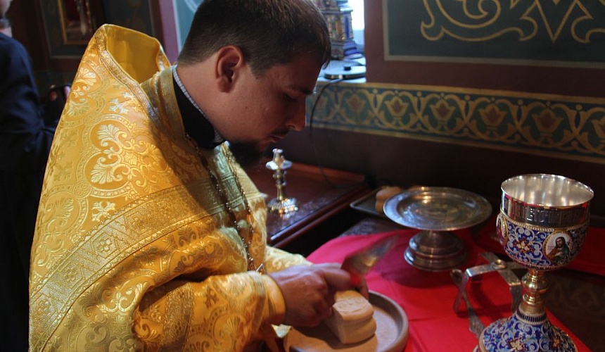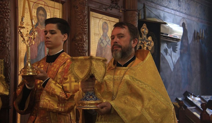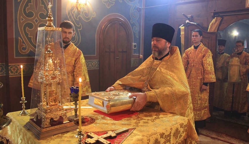 Перед причастием с проповедью к прихожанам обратился иерей Евгений.