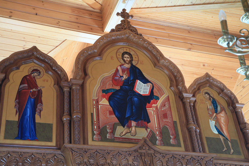 По завершении Литургии духовенство совершило славление перед образом святых Петра и Февронии.