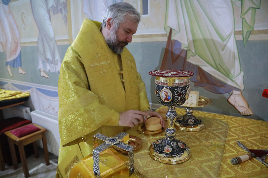 За богослужением читалось Евангелие от Луки, в котором Господь говорит о двух главных заповедях и милосердии.