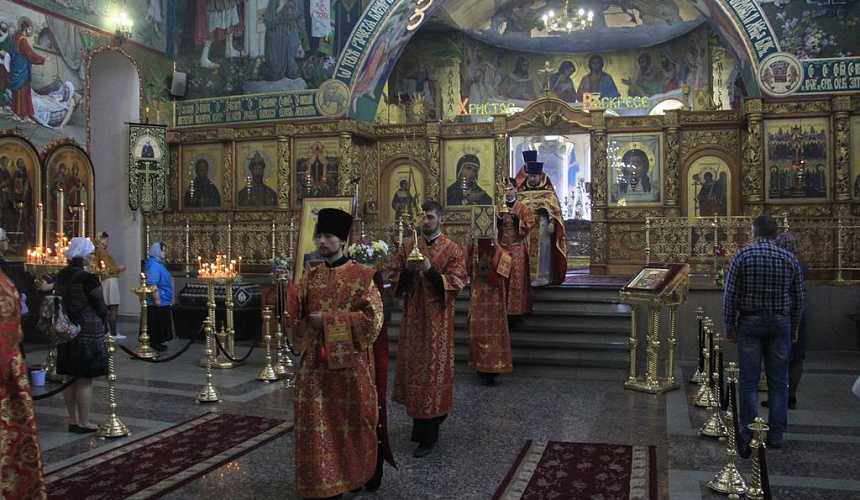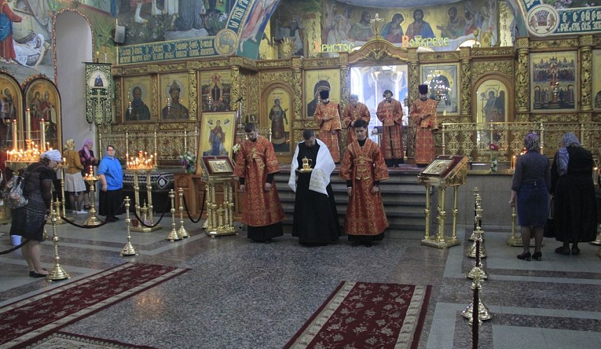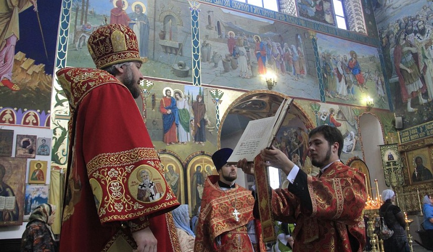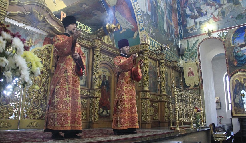 Его Преосвященству сослужили настоятель кафедрального собора иерей Симеон Есин, духовенство собора протоиерей Роман Бирюков, иерей Леонид Зацепилин, протодиакон Константин Лобов, иеродиакон Флавиан (Васильев).