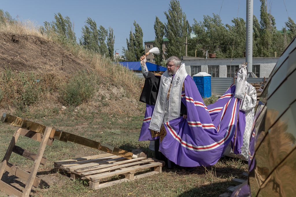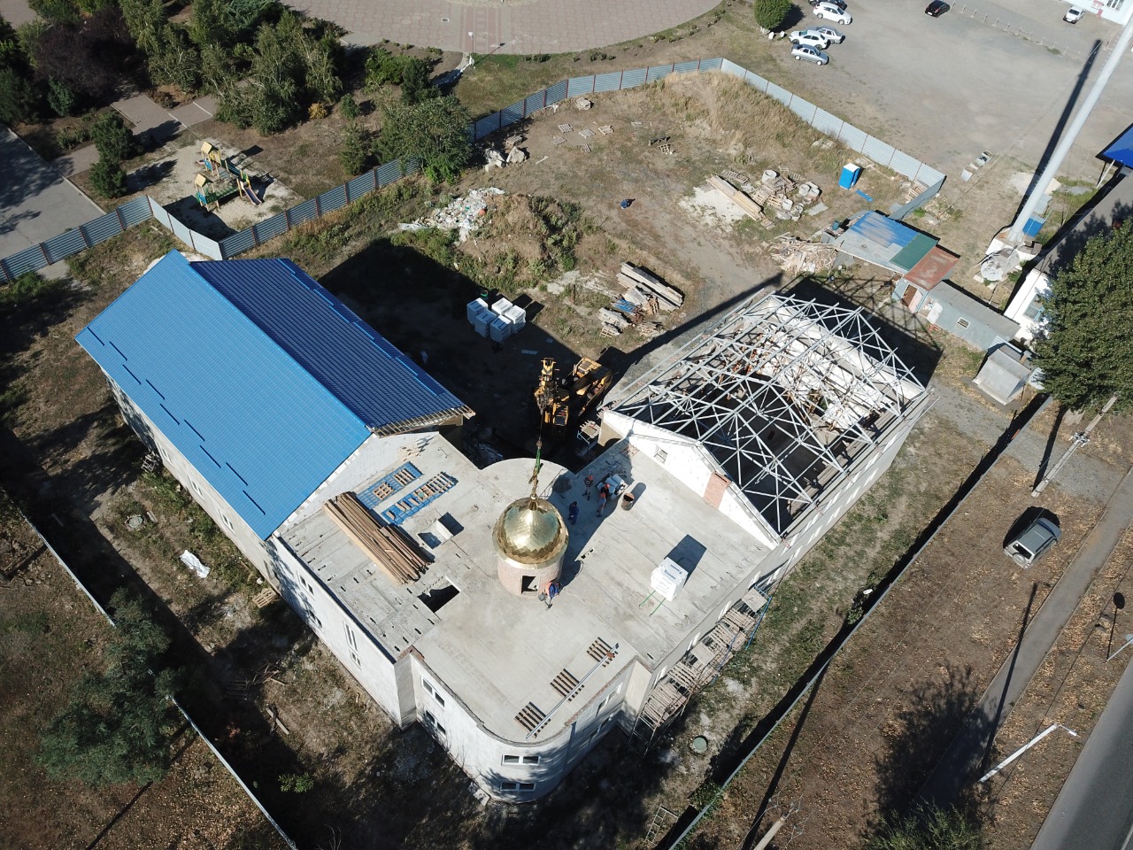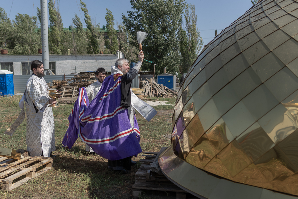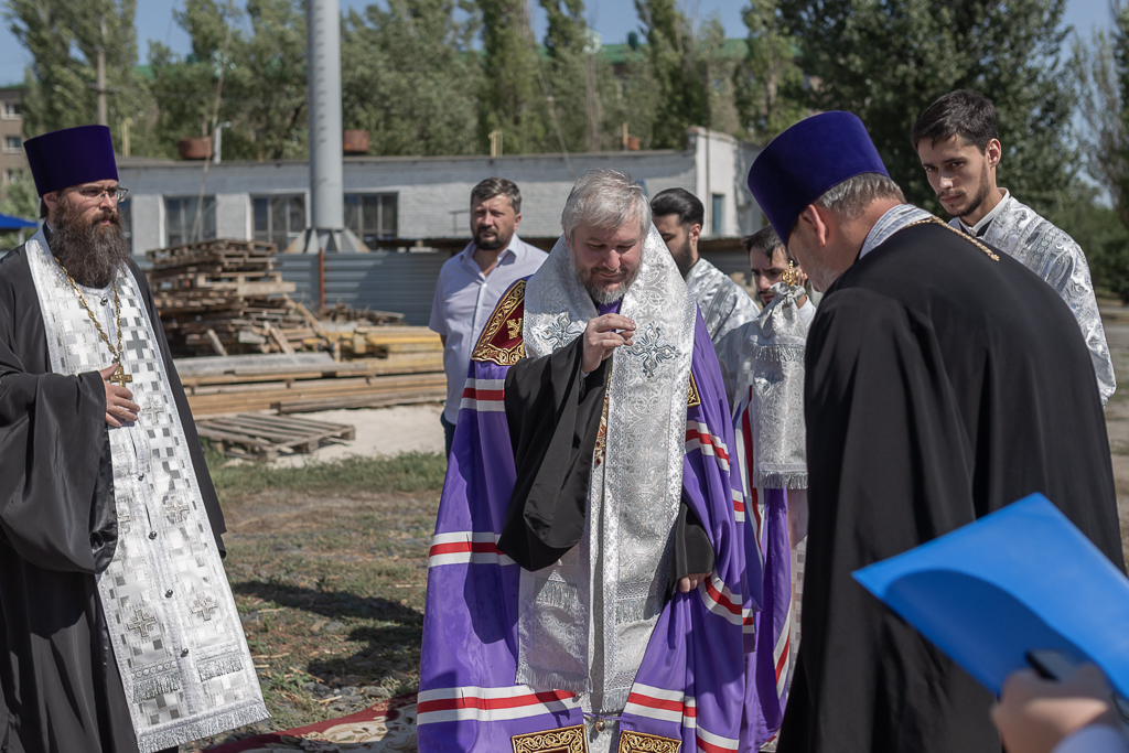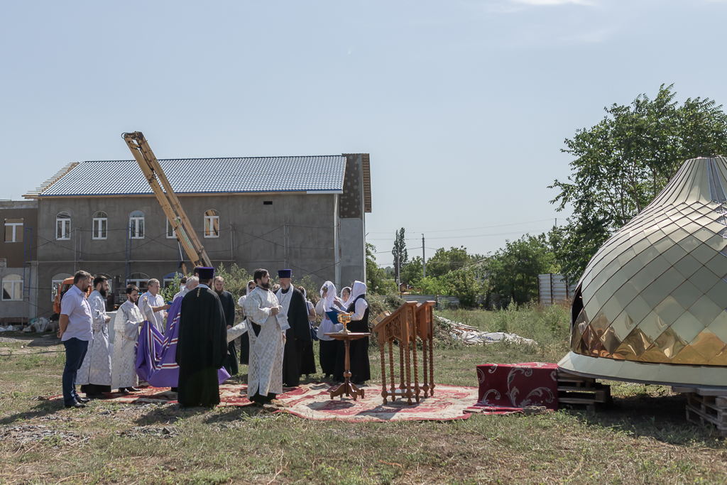 Епископ Шахтинский и Миллеровский Симон совершил чин освящения креста и купола для строящегося храма святых Веры, Надежды, Любови и матери их Софии при духовно-просветительском центре Покровского кафедрального собора города Шахты.
