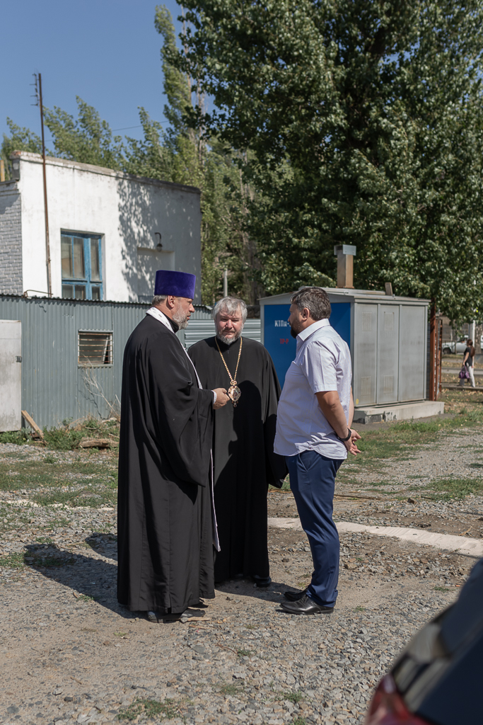 Вместе с архипастырем молились секретарь Шахтинской епархии иерей Александр Теличкин и ответственный за строительство, председатель епархиального отдела по церковной благотворительности и социальному служению епархии иерей Владислав Касьянов.