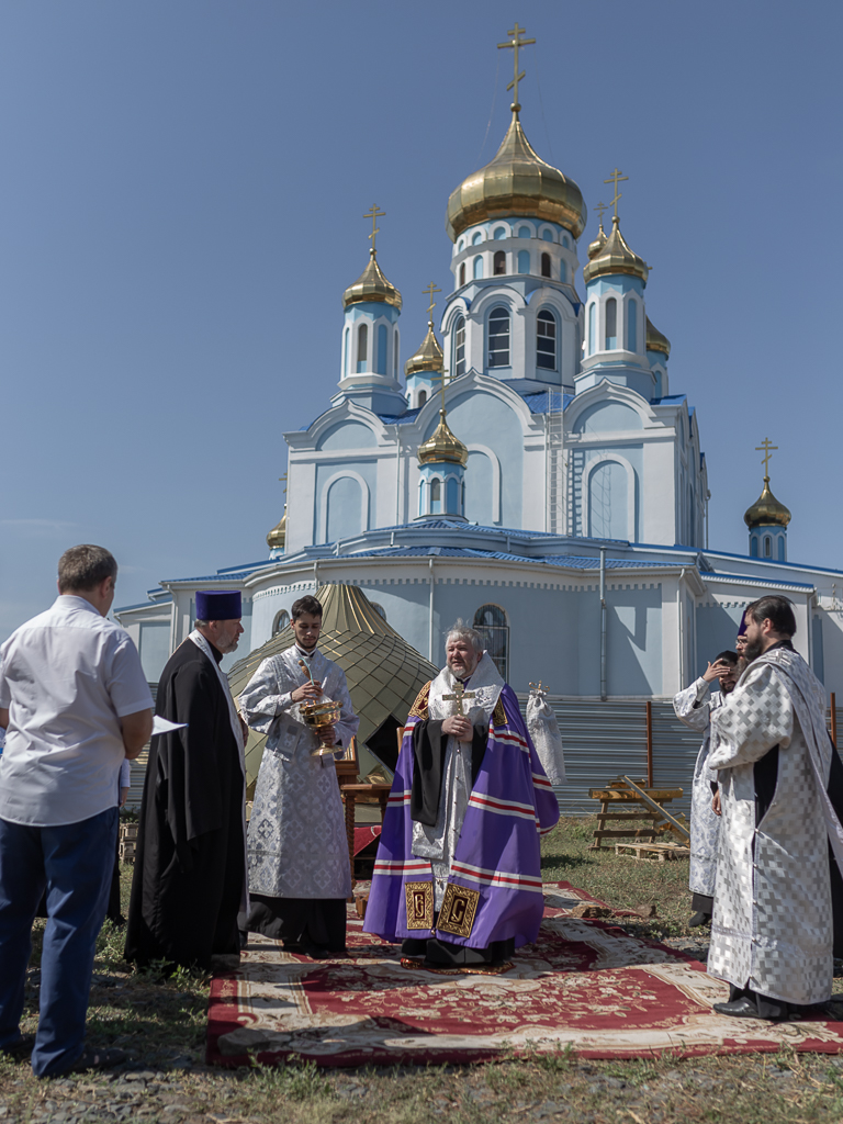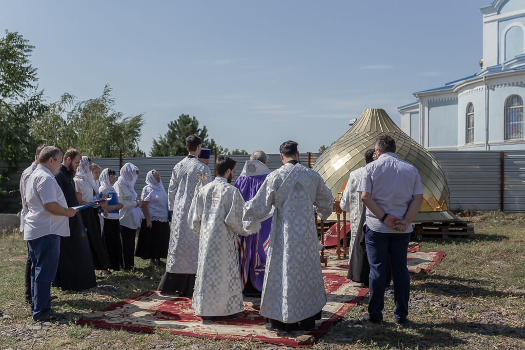 Преосвященнейший епископ Симон совершил чин освящения купола и креста для храма святых Веры, Надежды, Любови и матери их Софии