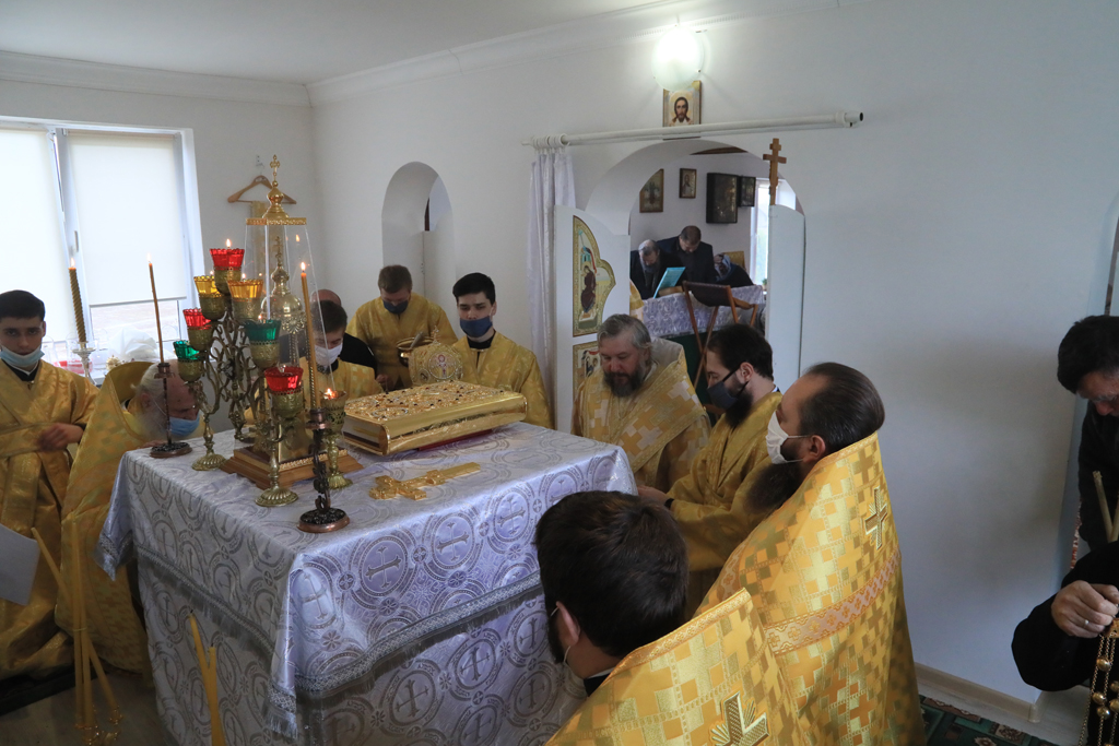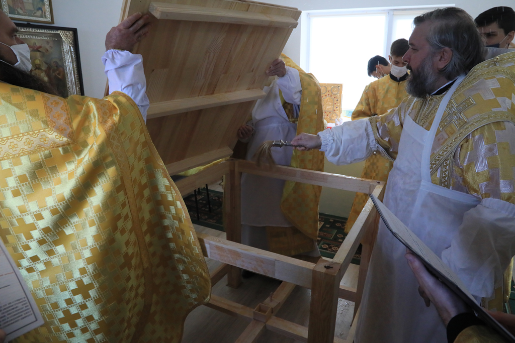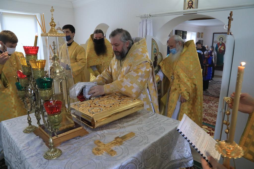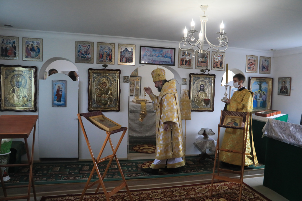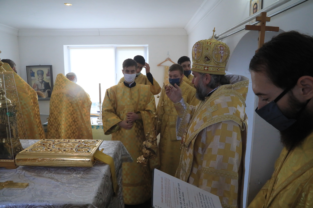 После чина освящения правящий архиерей Шахтинской епархии Преосвященнейший епископ Симон совершил Божественную литургию. Архиерею сослужили духовник Шахтинской епархии протоиерей Александр Минин, благочинный приходов Миллеровского округа иерей Роман Калинин, духовенство Миллеровского благочиния – игумен Аникита (Макаров) и иерей Георгий Лукащук, диакон Даниил Зырянов, диакон Трофим Осяк.