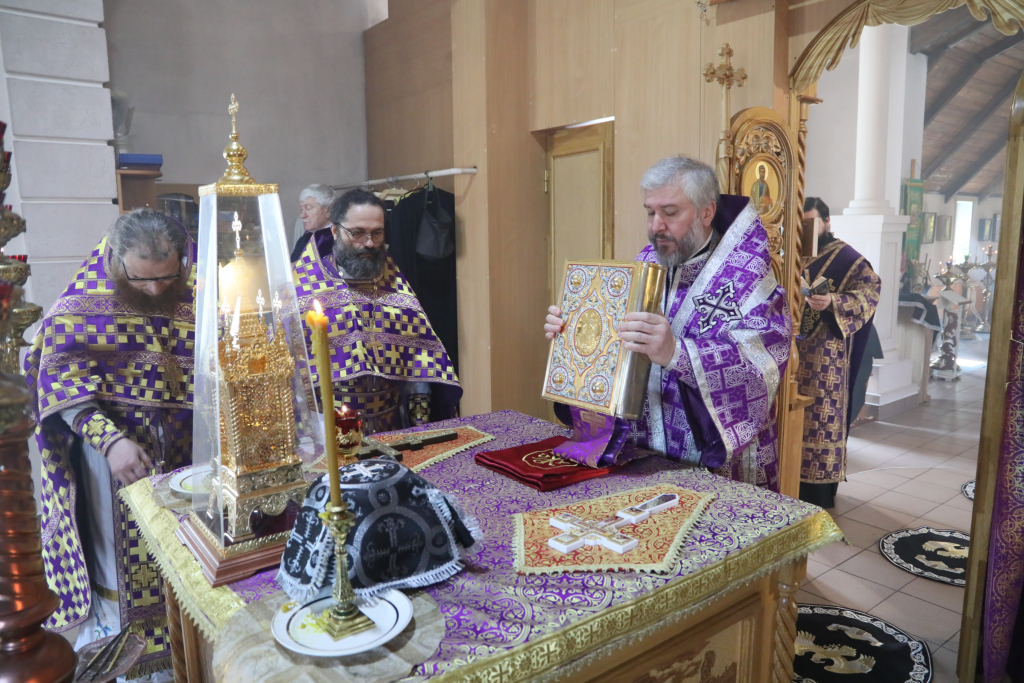 Преосвященнейший епископ Симон совершил Литургию Преждеосвященных Даров в храме святого Георгия Победоносца Покровского мужского монастыря слободы Верхнемакеевка