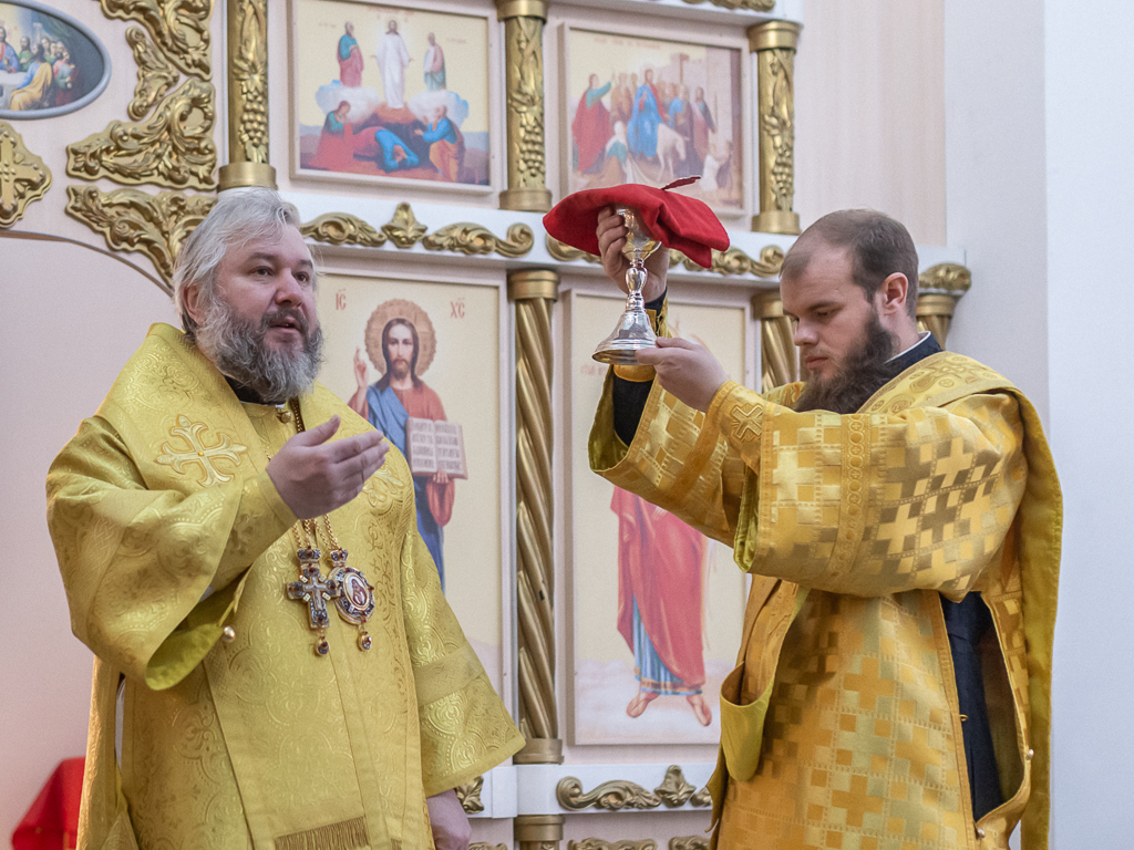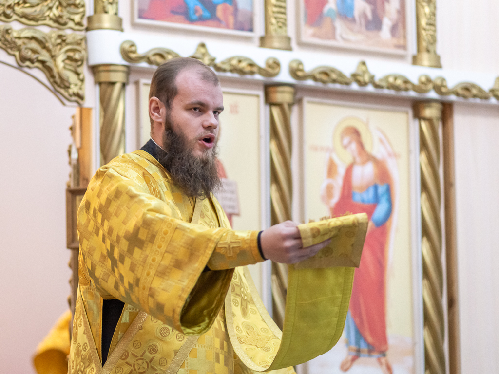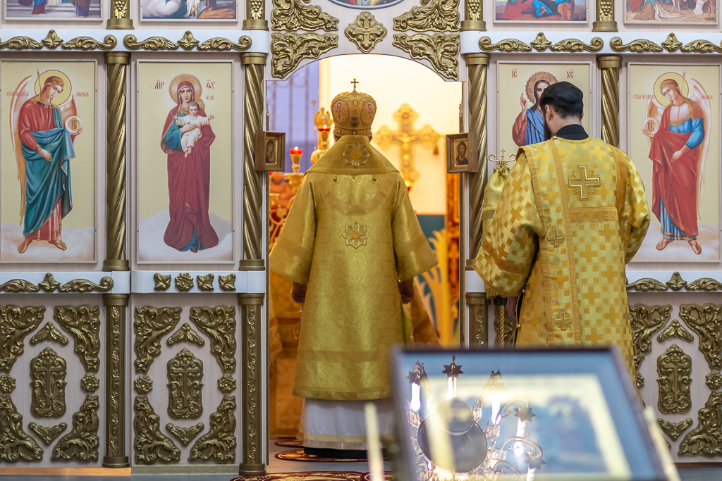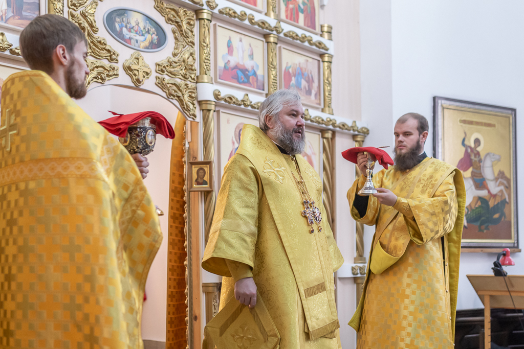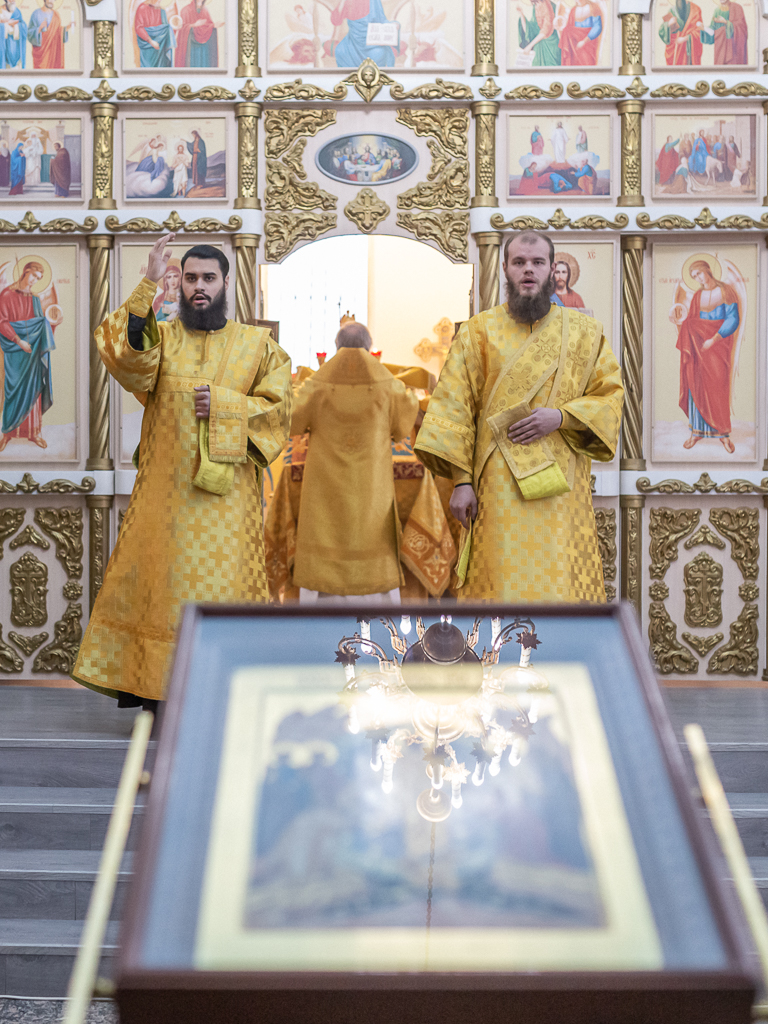 Его Преосвященству сослужило духовенство собора: иерей Даниил Зырянов, диакон Никита Осипов и диакон Вячеслав Иващенко.