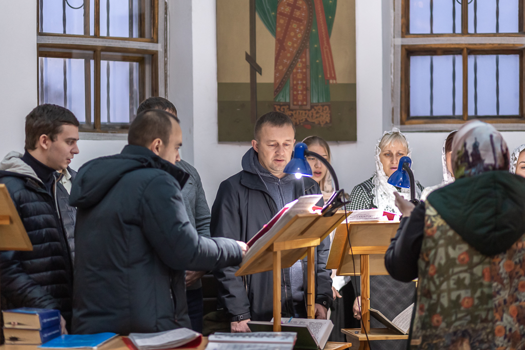 Богослужебные песнопения исполнил хор под управлением Татьяны Теличкиной.