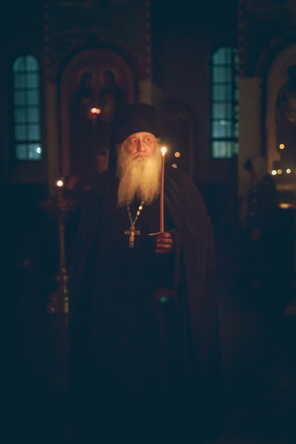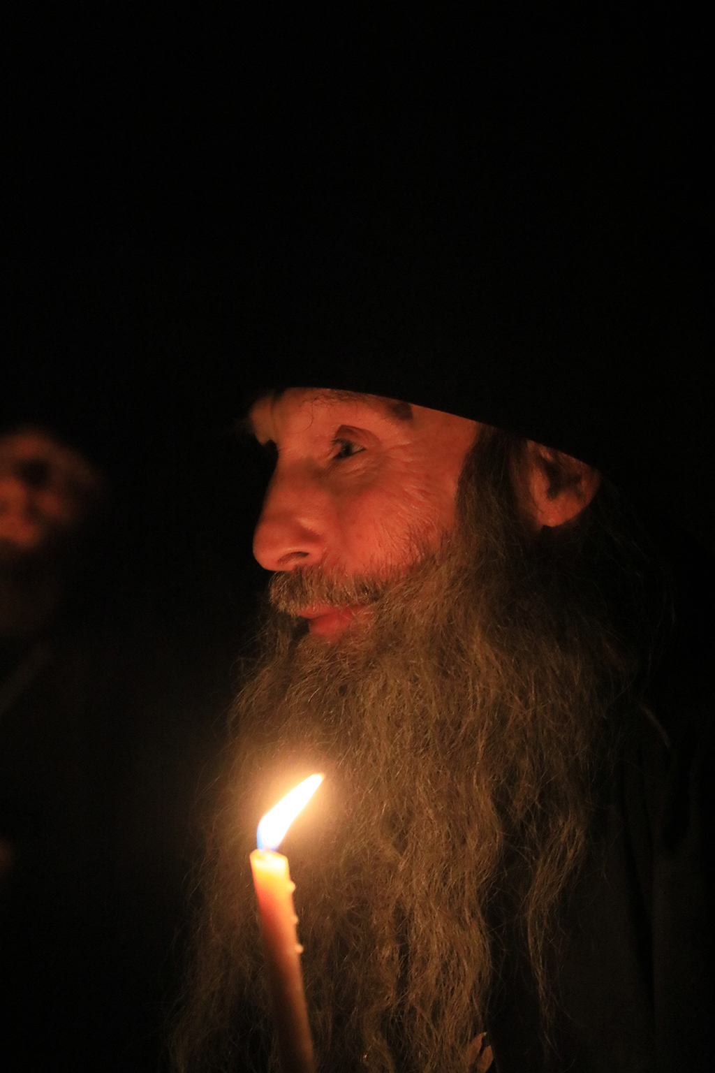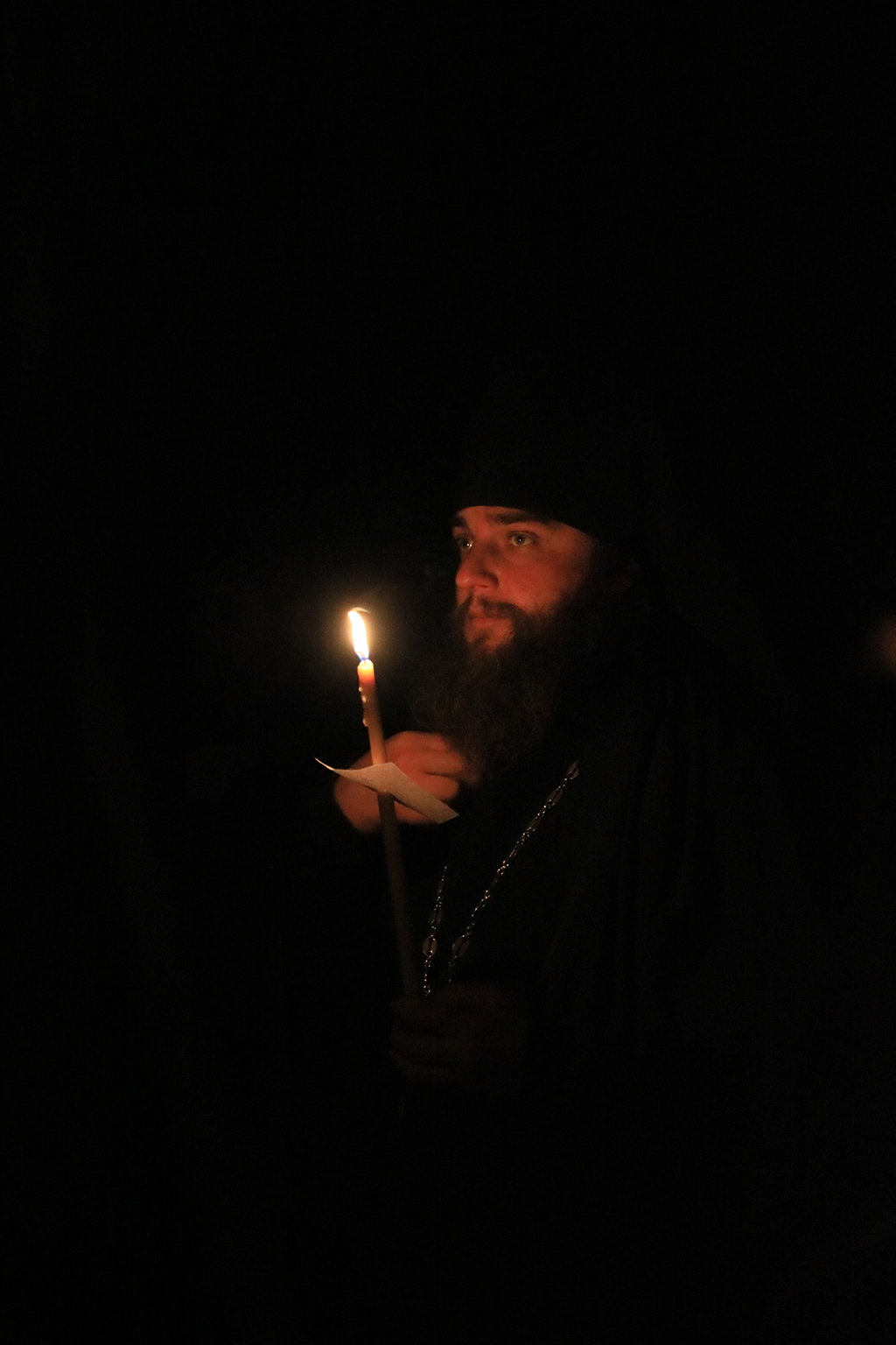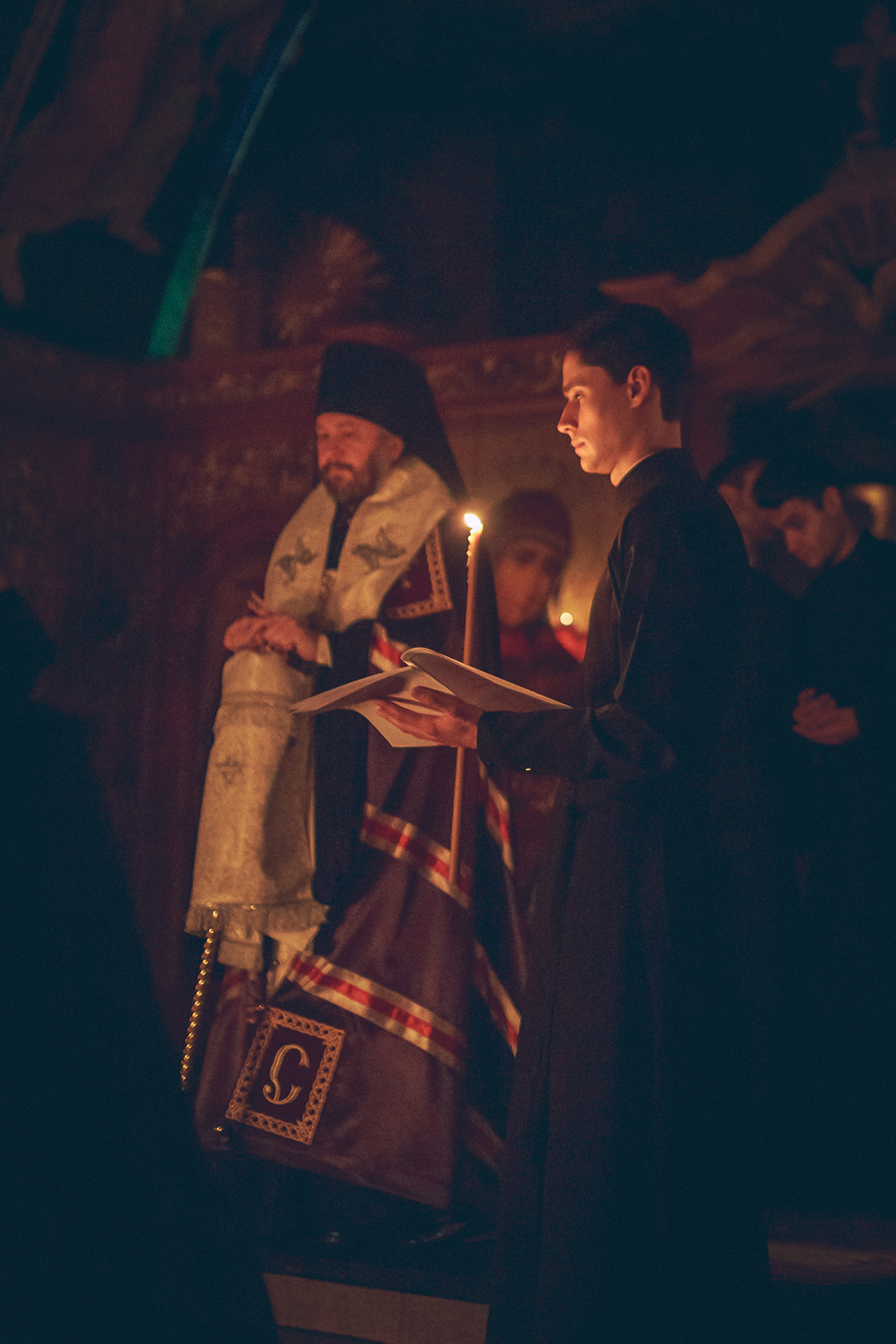 По расстеленной дорожке в храме постригаемый в знак своего смирения и покаяния от западной части, распинаясь, прополз к амвону. Монашеская братия епархии прикрывала постригаемого мантиями, пока тот полз к амвону и потом давал монашеские обеты.