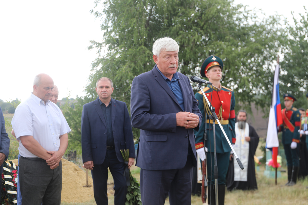 После отпевания в сопровождении почетного караула гроб был доставлен на кладбище поселка Донская Нива, здесь епископ Симон совершил заупокойную литию и обратился к присутствующим со словами поддержки и духовного напутствия.