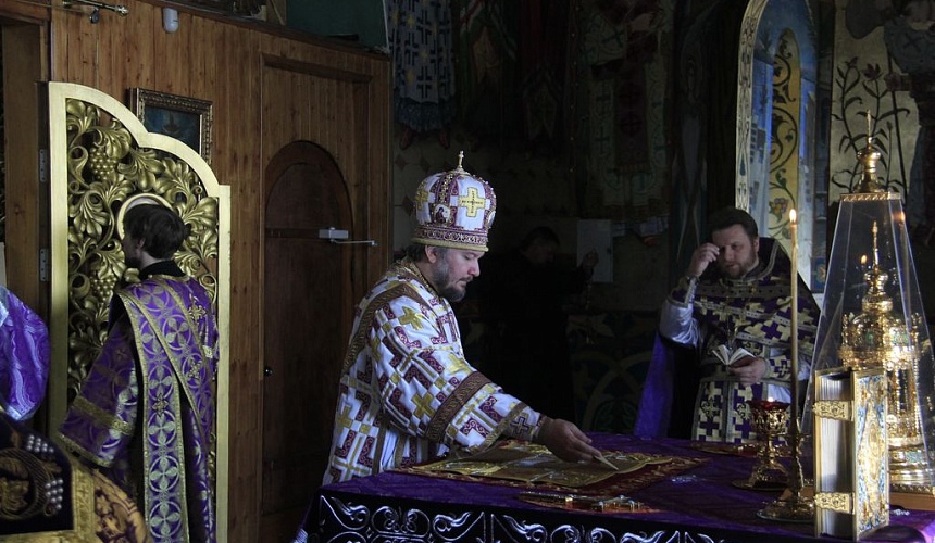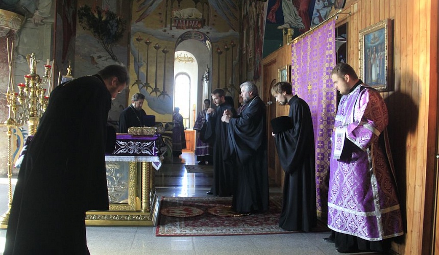 Его Преосвященству сослужили настоятель Покровского кафедрального собора иерей Симеон Есин, духовенство собора: протоиерей Роман Бирюков, иерей Леонид Зацепилин, иерей Роман Калинин, протодиакон Константин Лобов, иеродиакон Флавиан (Васильев), диакон Георгий Кофанов, диакон Григорий Гринько.