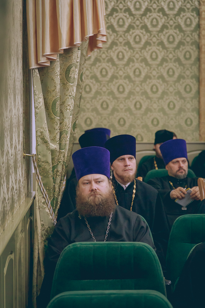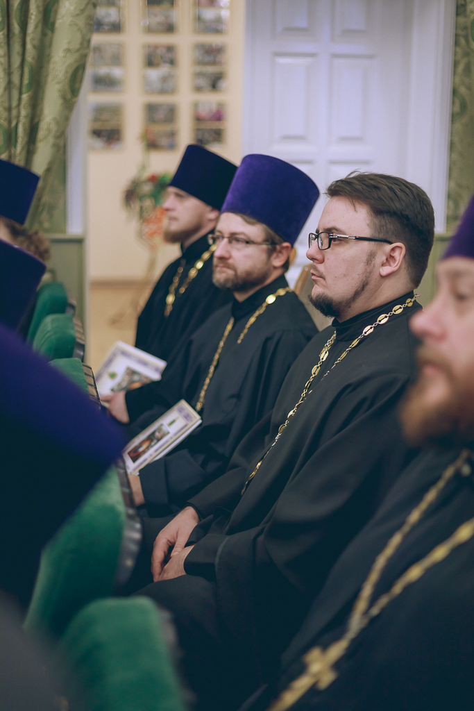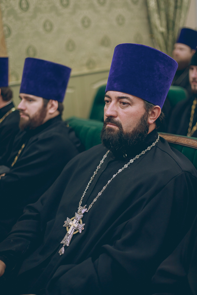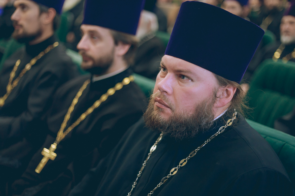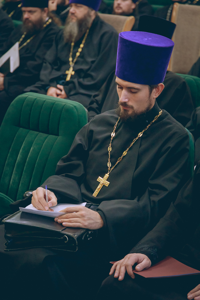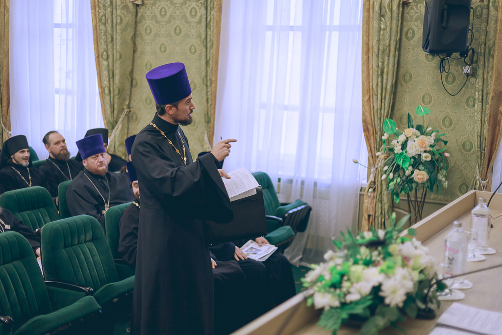 Председатель отдела религиозного образования и катехизации протоиерей Сергий Яценко поблагодарил священнослужителей за соработничество в деле духового просвещения на местах. Рассказал о новых стандартах относительно воскресных школ на приходах. Также доложил об основных событиях, прошедших в рамках работы отдела. Протоиерей Сергий пояснил о работе в дошкольных, школьных учреждениях и вузах, рассказал о методическом центре при отделе и его работе, также о секторе казачьего образования, привел статистику о проделанной работе.
