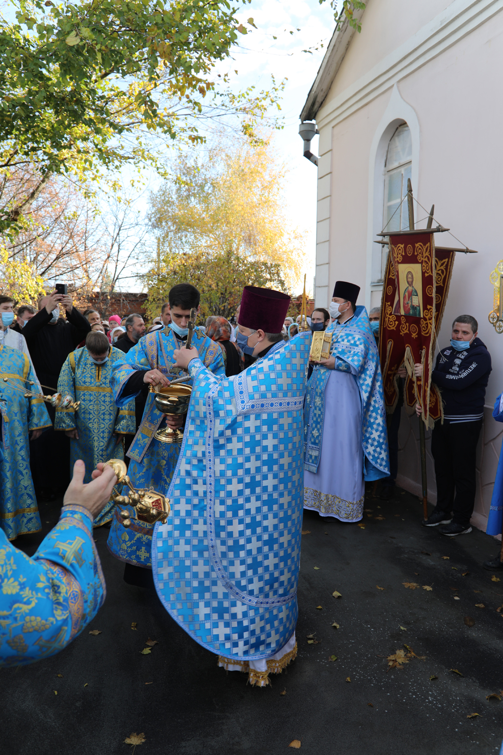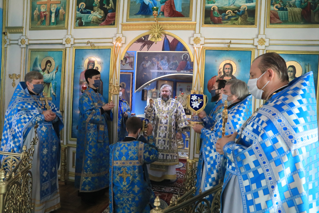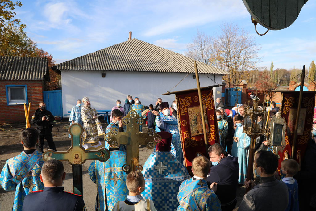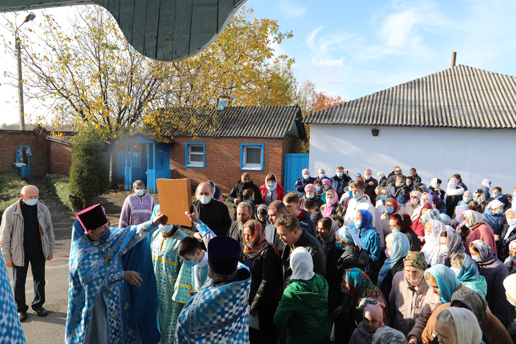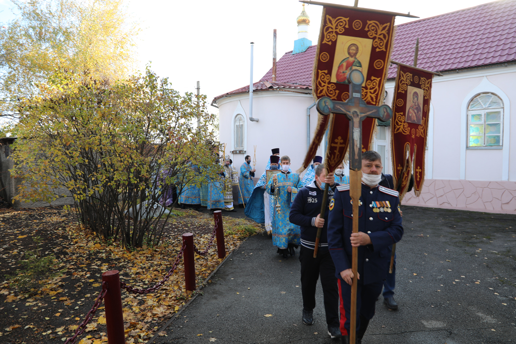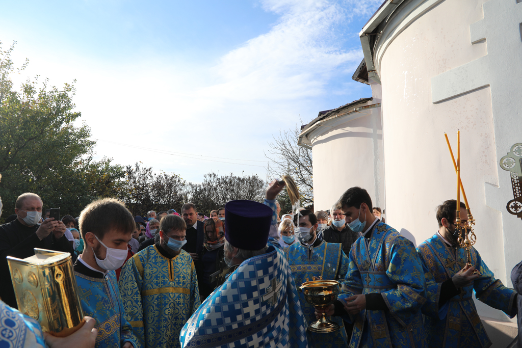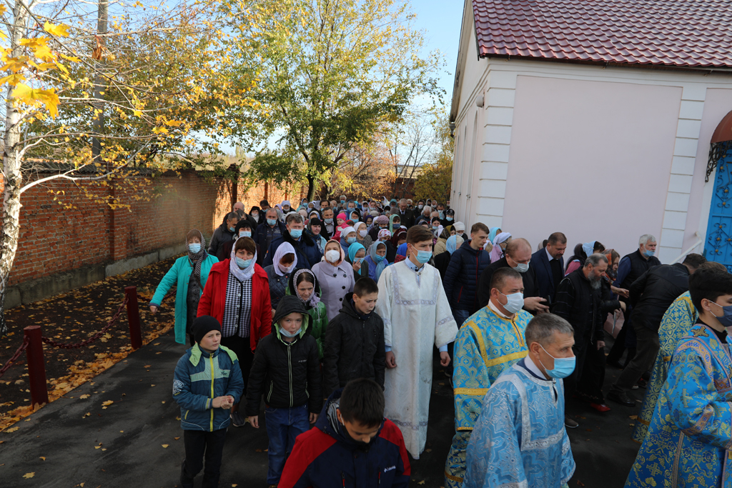 По завершении Литургии прихожане и духовенство во главе с Архипастырем прошли крестным ходом вокруг храма в честь престольного торжества. Крестный ход завершился соборной молитвой перед праздничной иконой.