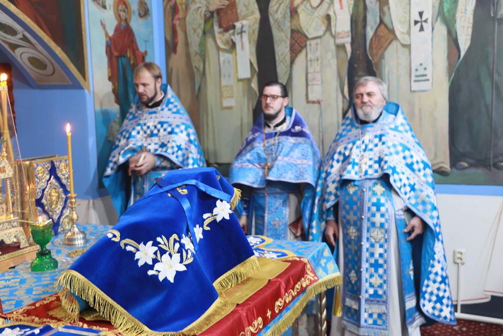 По завершении Литургии прихожане и духовенство во главе с архипастырем прошли крестным ходом вокруг храма в честь престольного торжества. Крестный ход завершился соборной молитвой перед праздничной иконой.