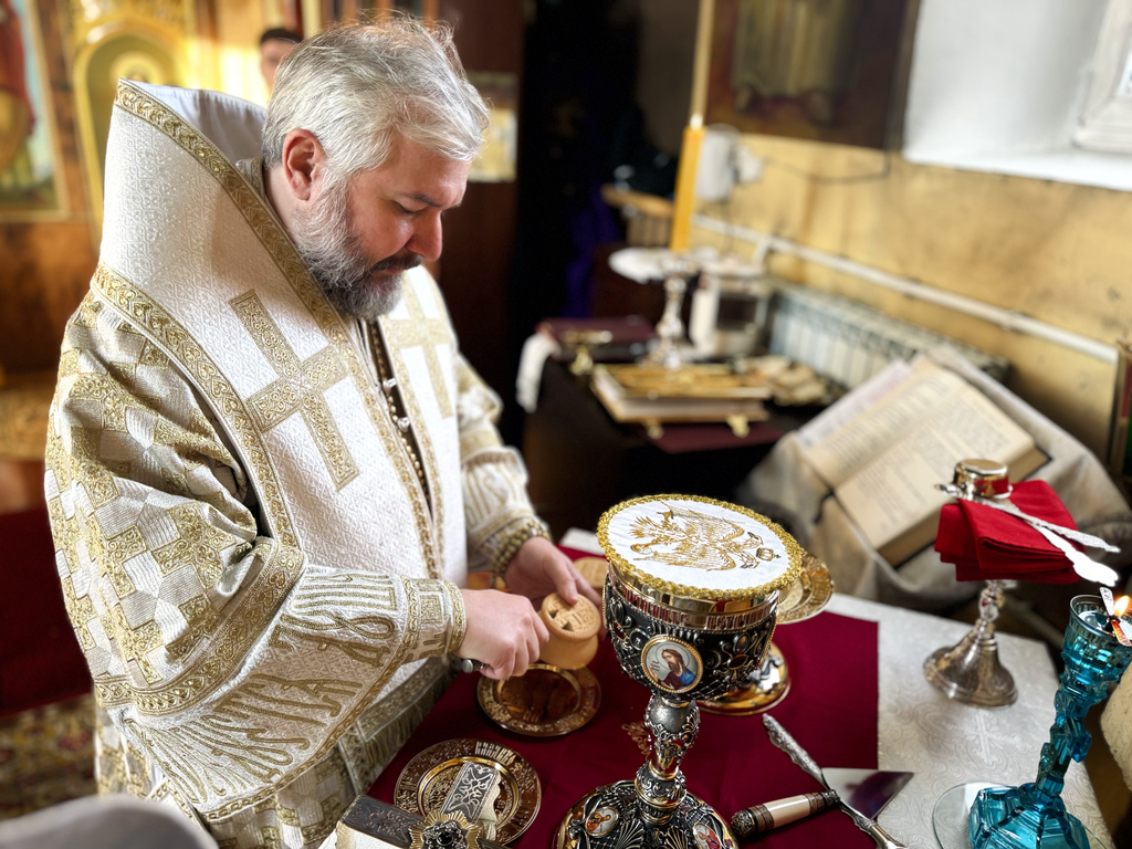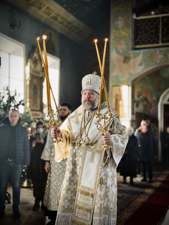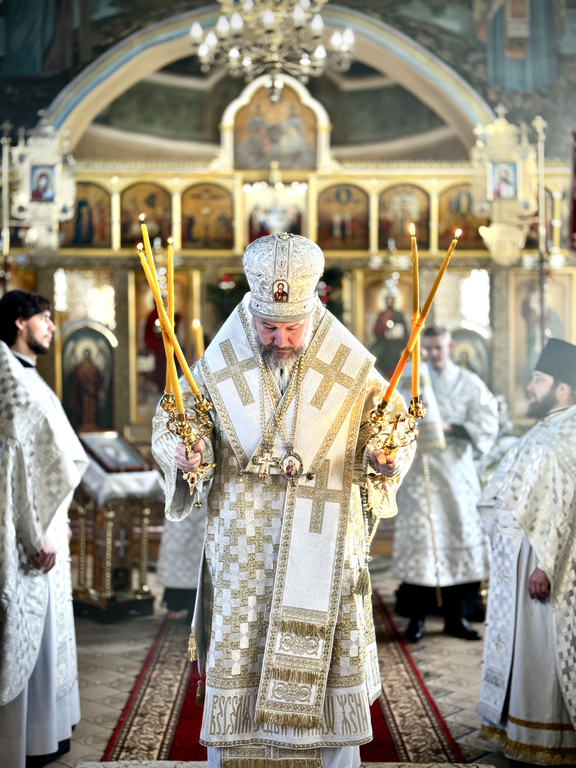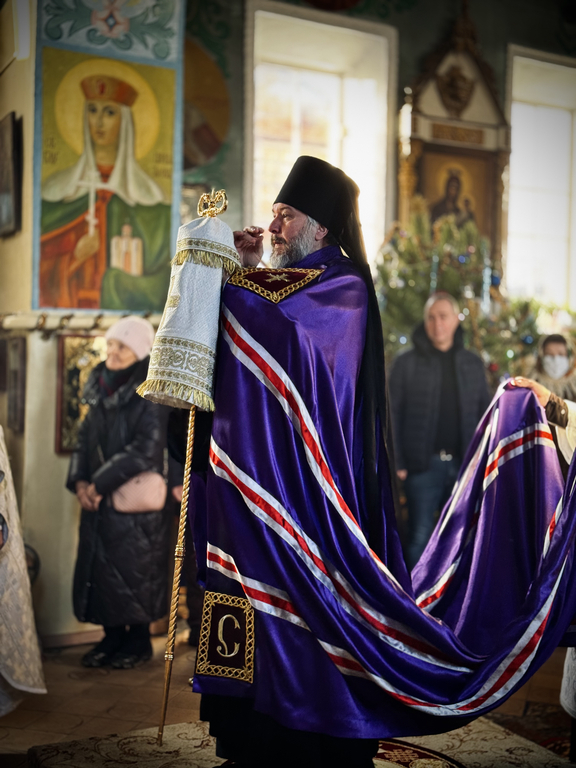 Его Преосвященству сослужили исполняющий обязанности настоятеля храма апостола Андрея иерей Симеон Есин, иерей Михаил Дубянский и диакон Трофим Осяк.