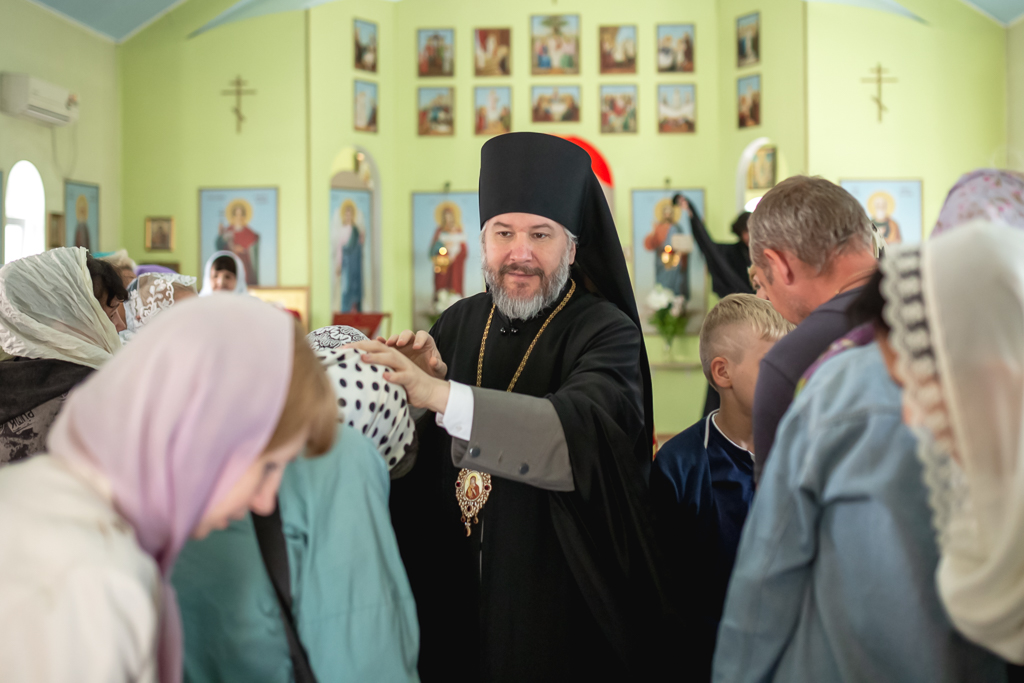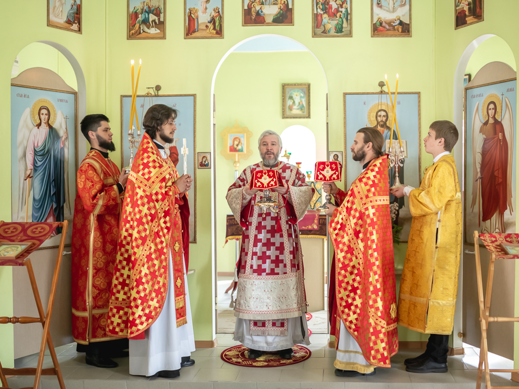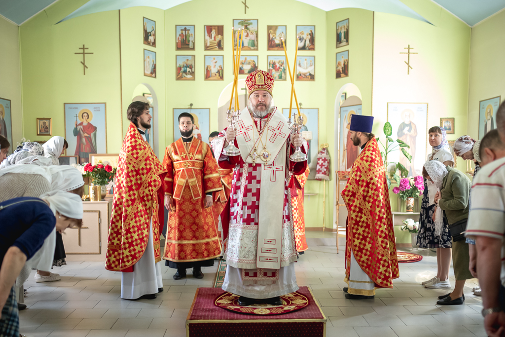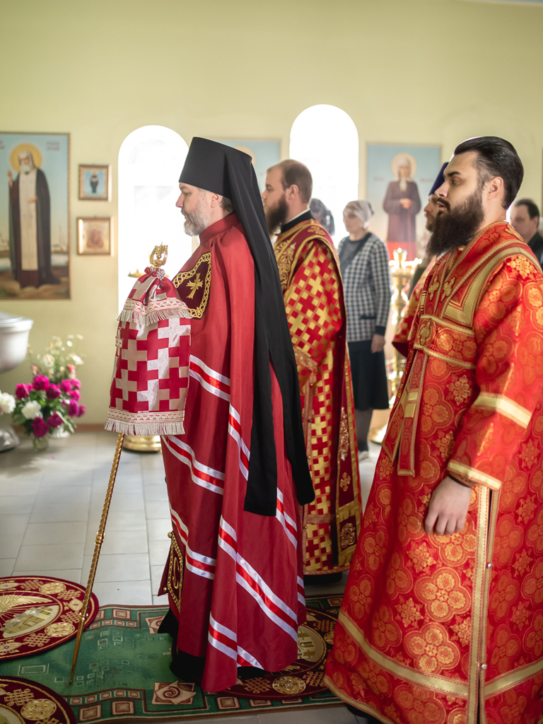 Его Преосвященству сослужили настоятель храма иерей Сергий Болоцков, иерей Михаил Дубянский и диакон Никита Осипов.