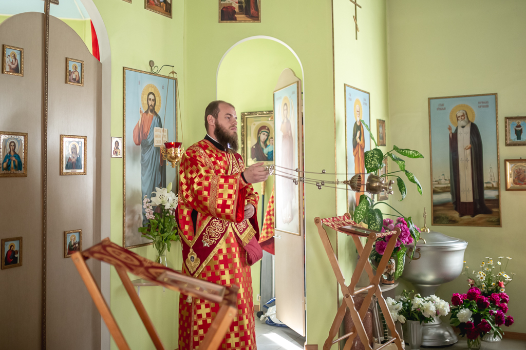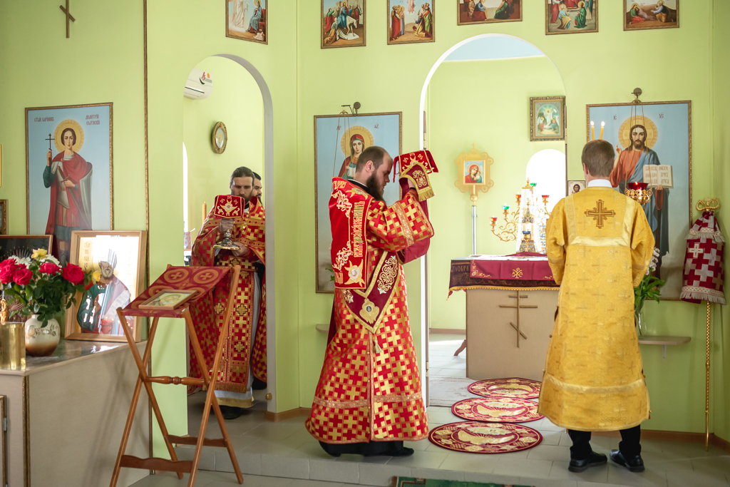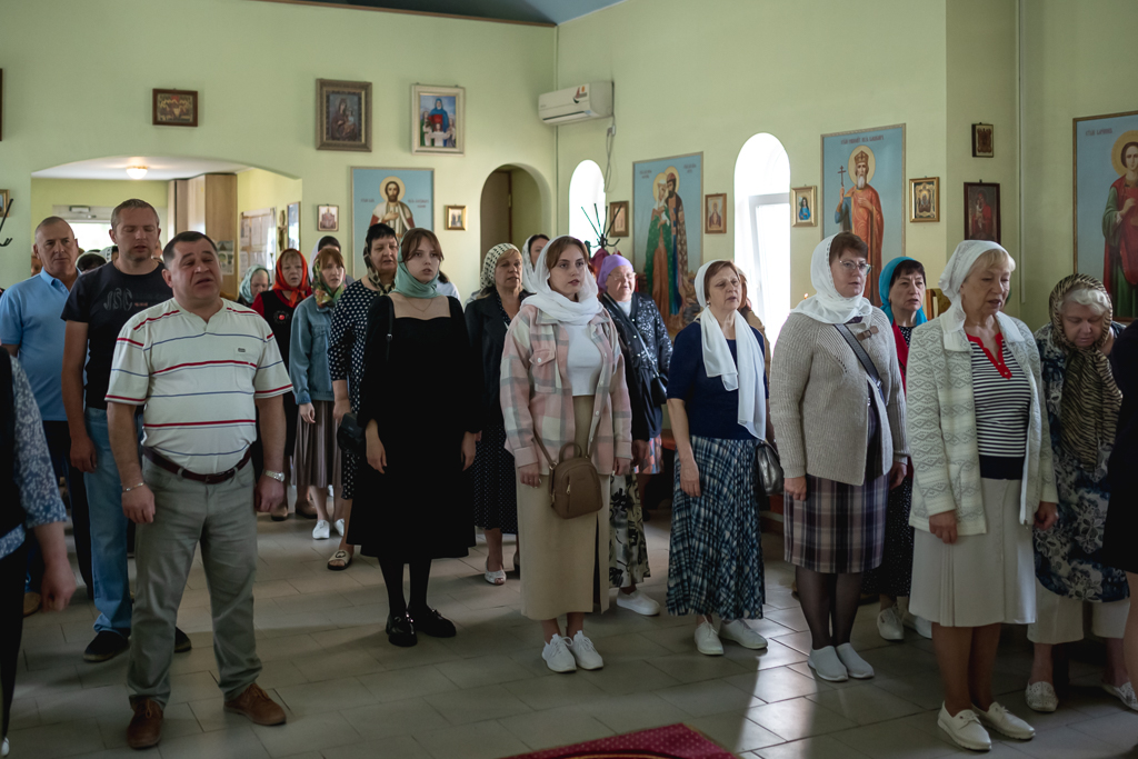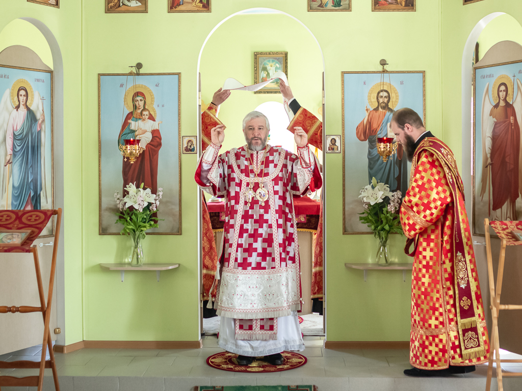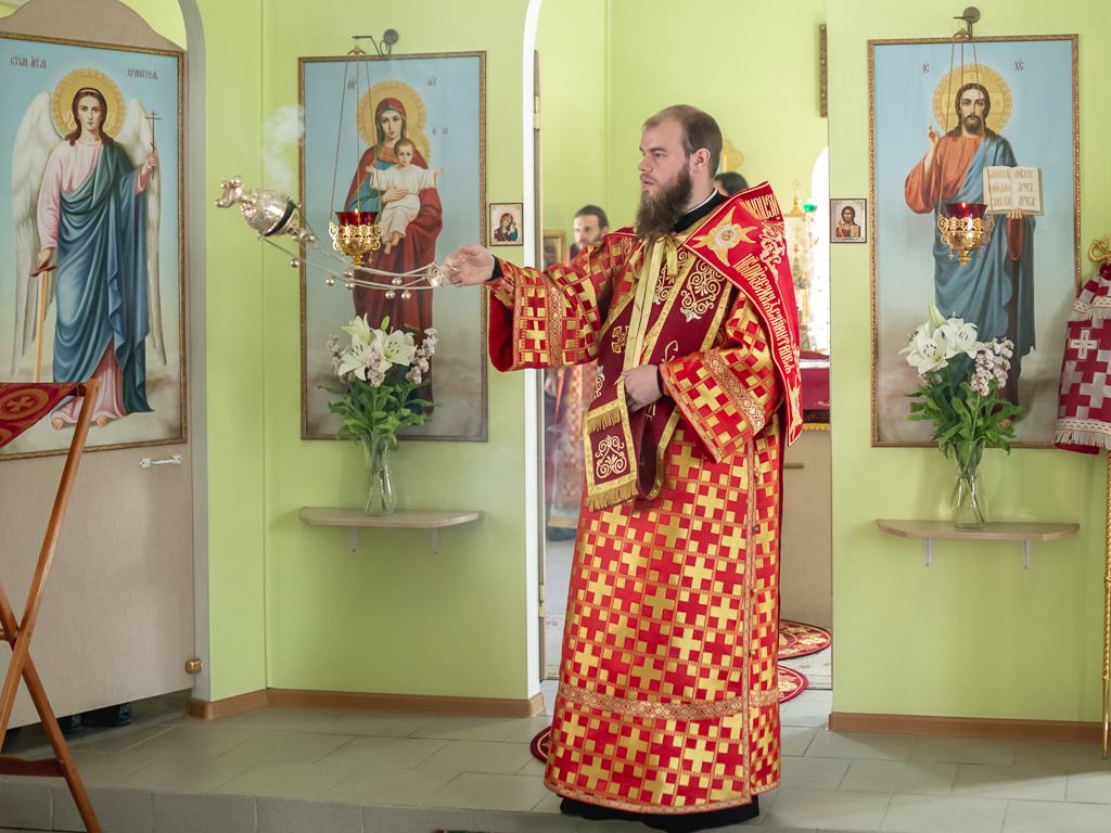 Его Преосвященству сослужили настоятель храма иерей Сергий Болоцков, иерей Михаил Дубянский и диакон Никита Осипов.