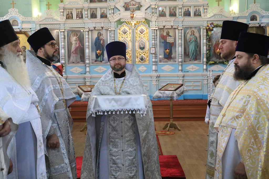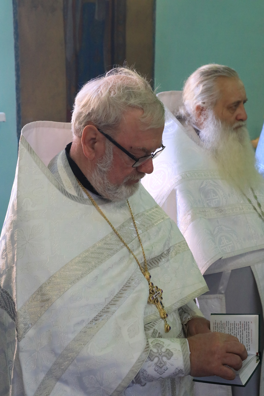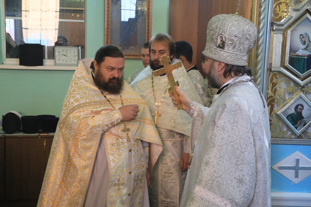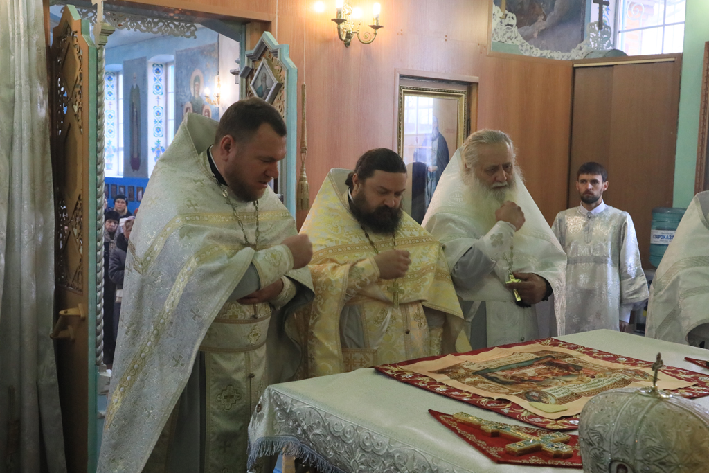 Праздничную Божественную литургию возглавил Правящий архиерей Шахтинской епархии Преосвященнейший епископ Симон, которому сослужили благочинный приходов Нижнедонского округа, настоятель храма протоиерей Сергий Яценко; настоятель храма святого благоверного князя Димитрия Донского пос. Нижнедонской игумен Александр (Корнеев); настоятель храма святителя Тихона Задонского ст. Кривянской протоиерей Константин Федосеев; настоятель храма святой мученицы Татианы пос. Персиановский при ДонГАУ иеромонах Николай (Наметышев); настоятель храма Святой Троицы хут. Ягодинка протоиерей Николай Филимонов; настоятель Алексеевского архиерейского подворья г. Шахты иерей Евгений Поцелуев; клирик храма праведного Иоанна Кронштадтского иерей Виталий Крендясов; иеродиакон Флавиан (Васильев).