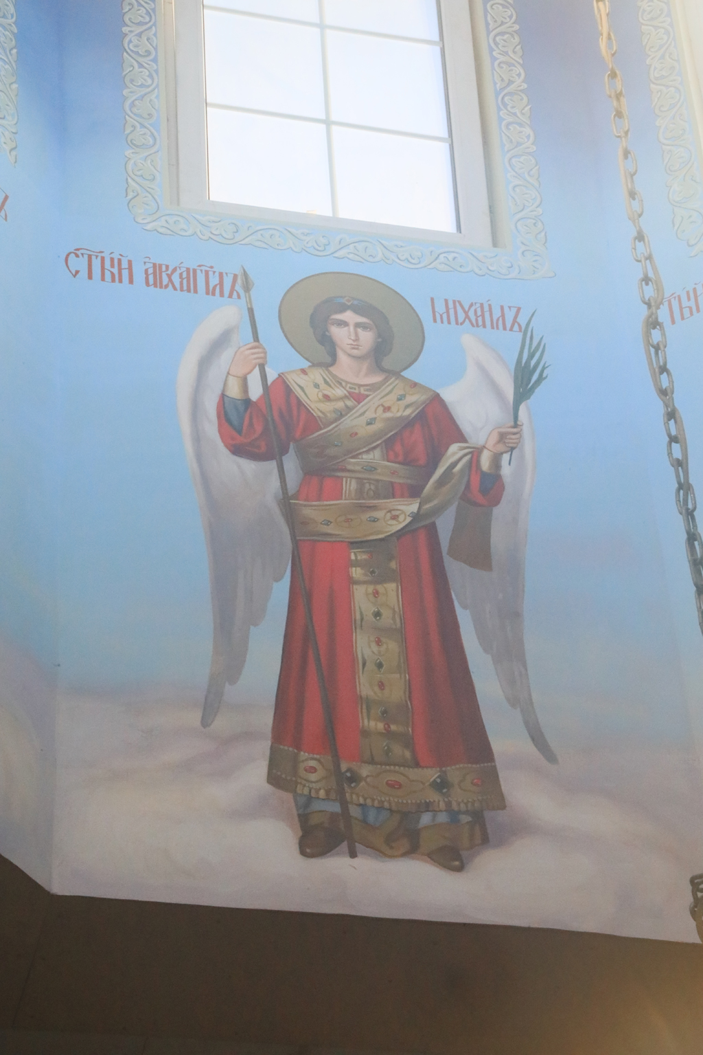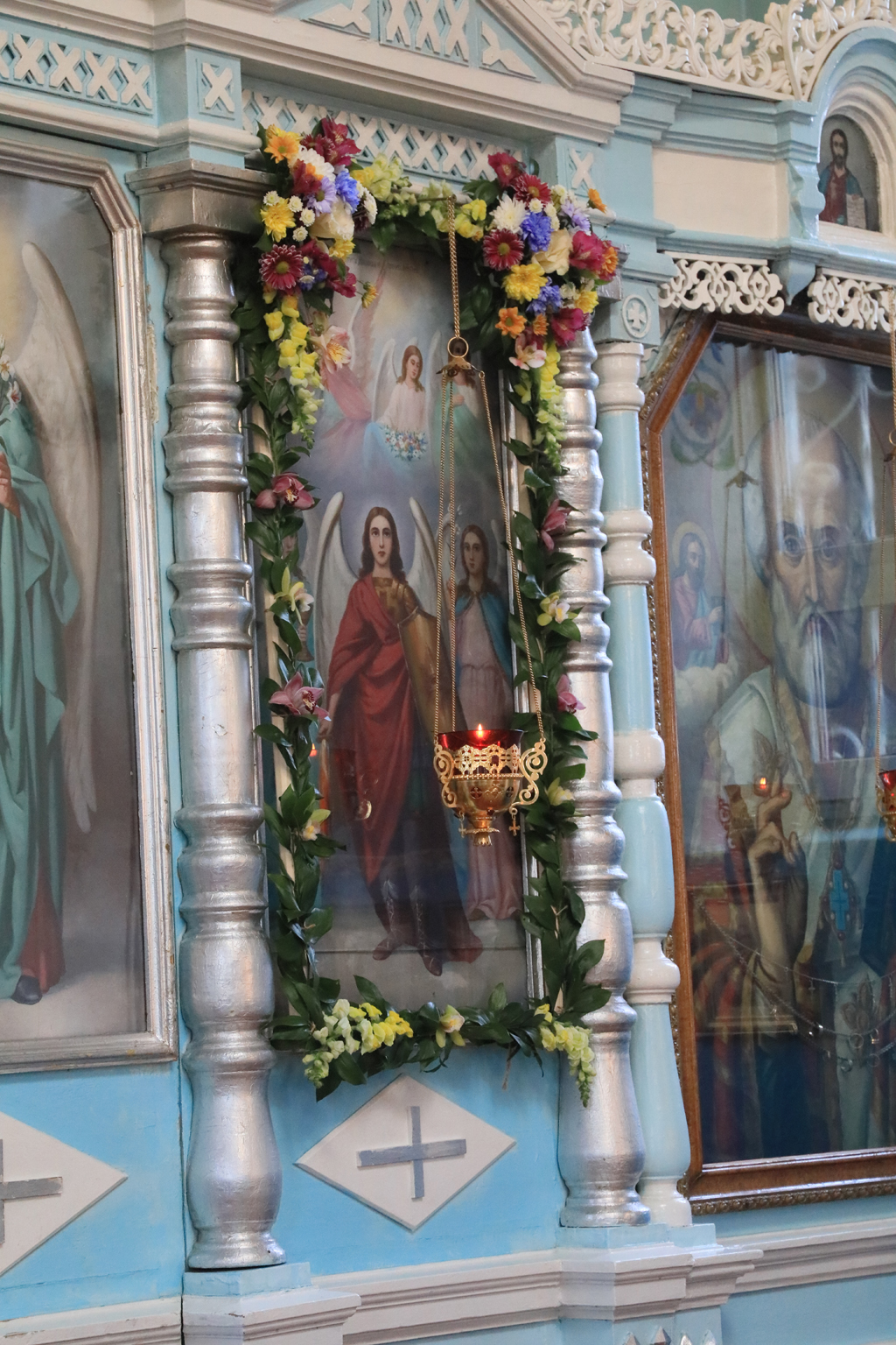 После литургии духовенство и прихожане прошли крестным ходом вокруг храма, прославляя небесного покровителя Архистратига Михаила.