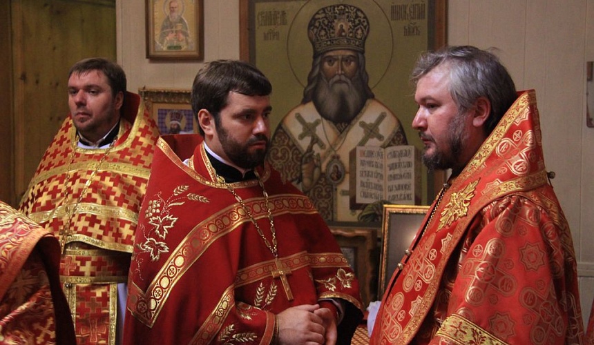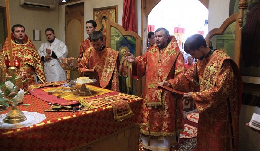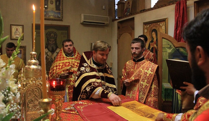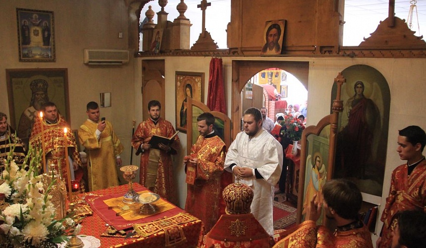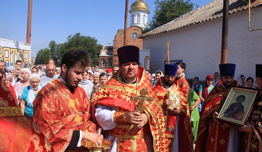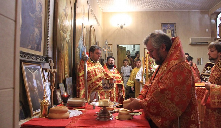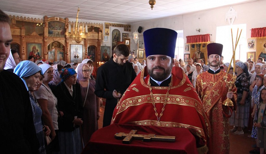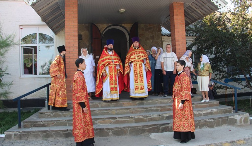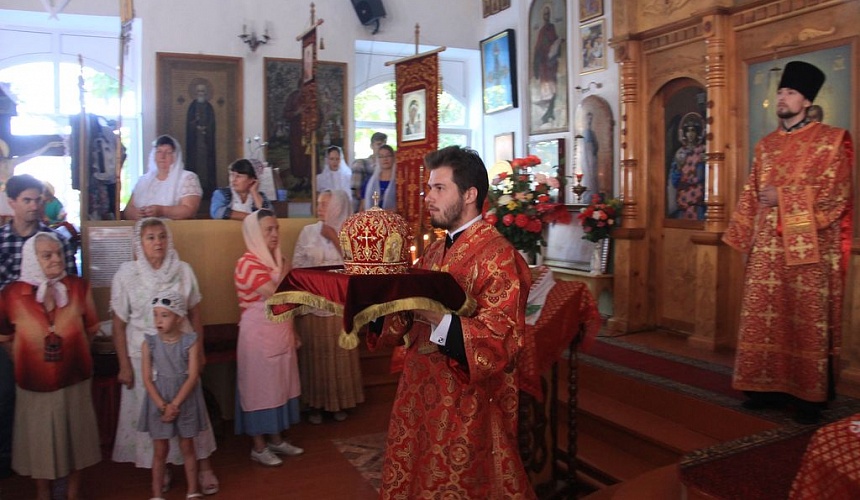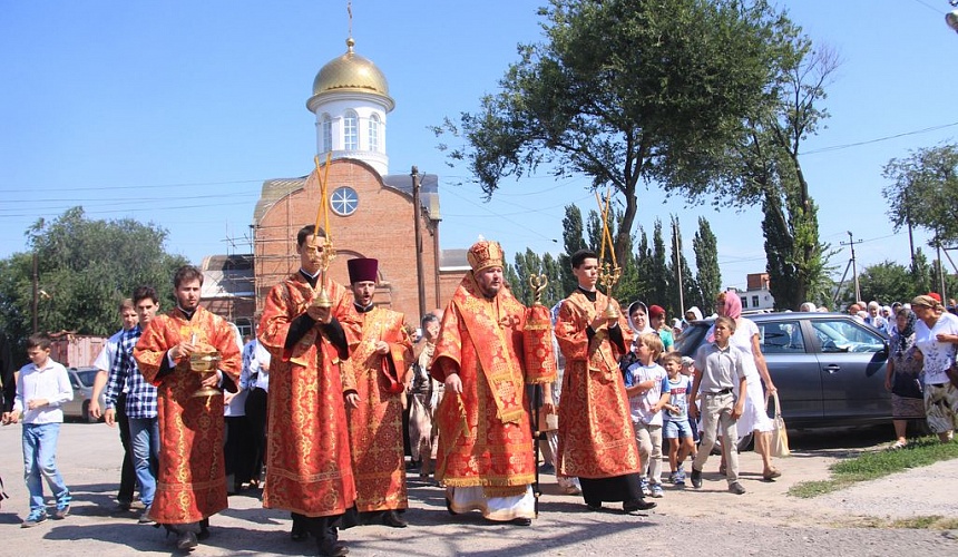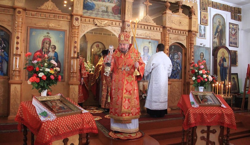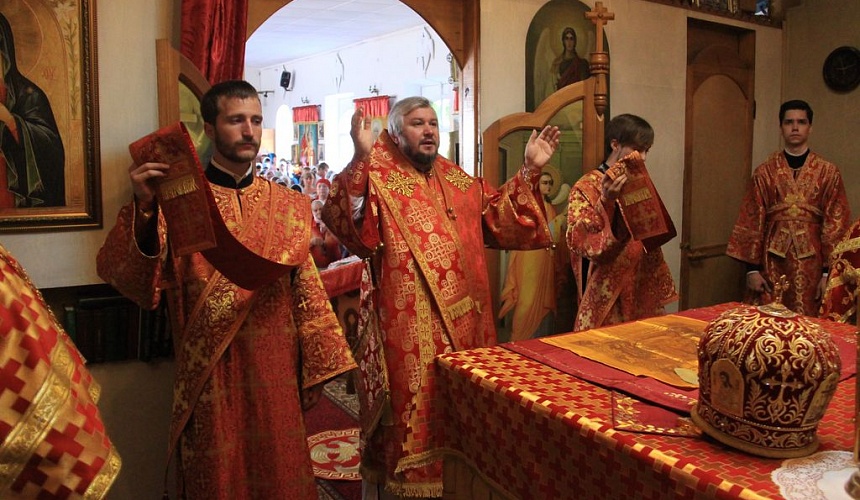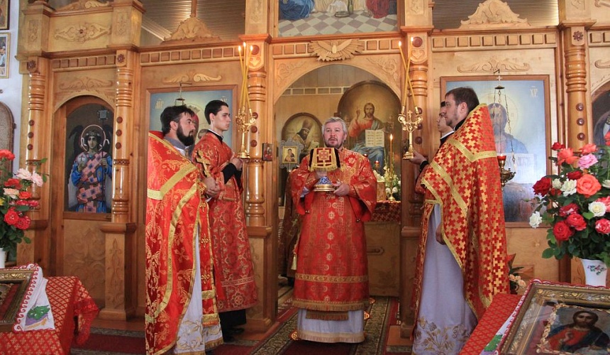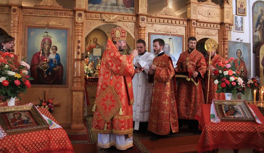 После Литургии духовенство и прихожане во главе с архиереем прошли крестным ходом вокруг храма, прославляя небесного покровителя прихода.