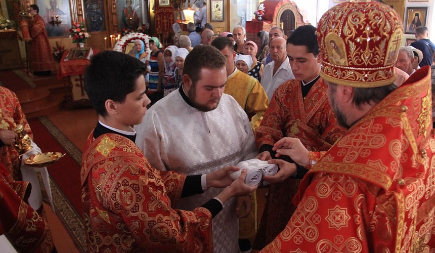 За богослужением епископ Симон рукоположил в сан диакона выпускника Вологодской духовной семинарии чтеца Григория Гринько, который будет проходить сорокоуст в Покровском кафедральном соборе г. Шахты.