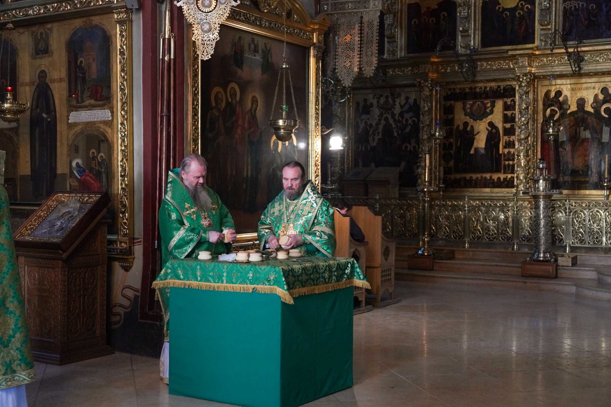 На сугубой ектении были вознесены особые прошения, Святейший Патриарх Кирилл прочитал молитву о Святой Руси.